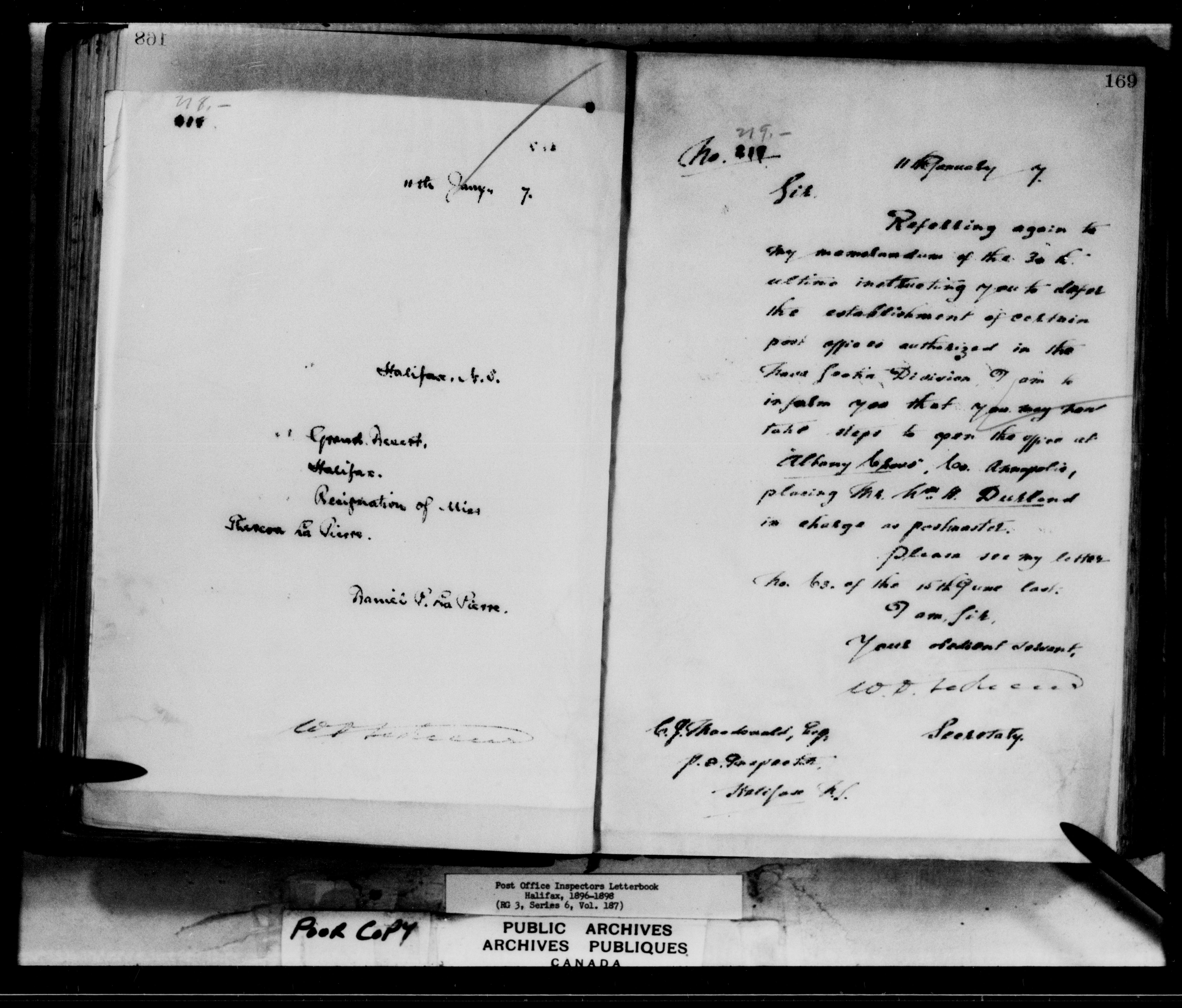 Correspondence from the Secretary to Post Office Inspectors : Letterbooks, Halifax - 7262