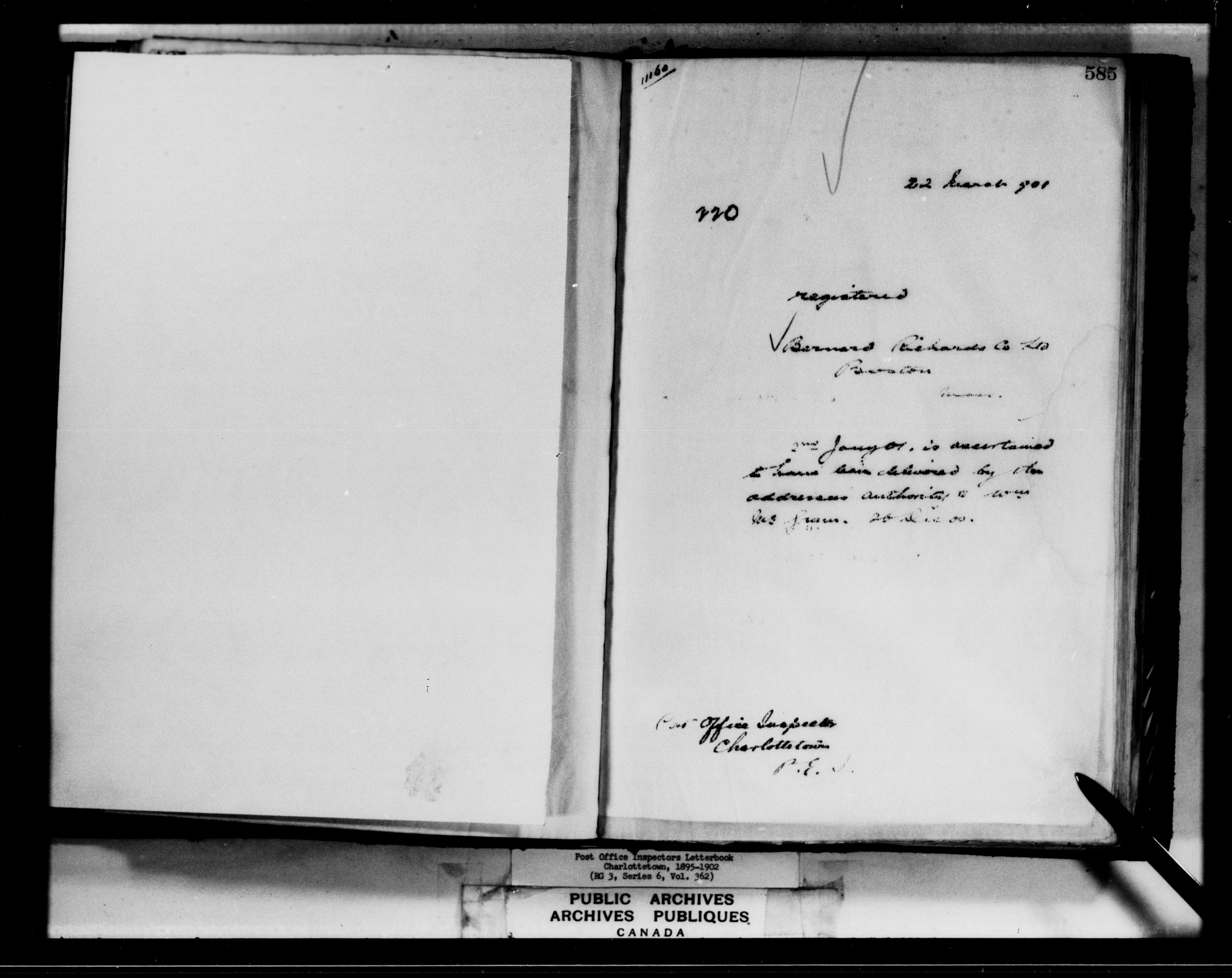 Correspondence from the Secretary to Post Office Inspectors : Letterbooks, Prince Edward Island, Charlottetown - 7266