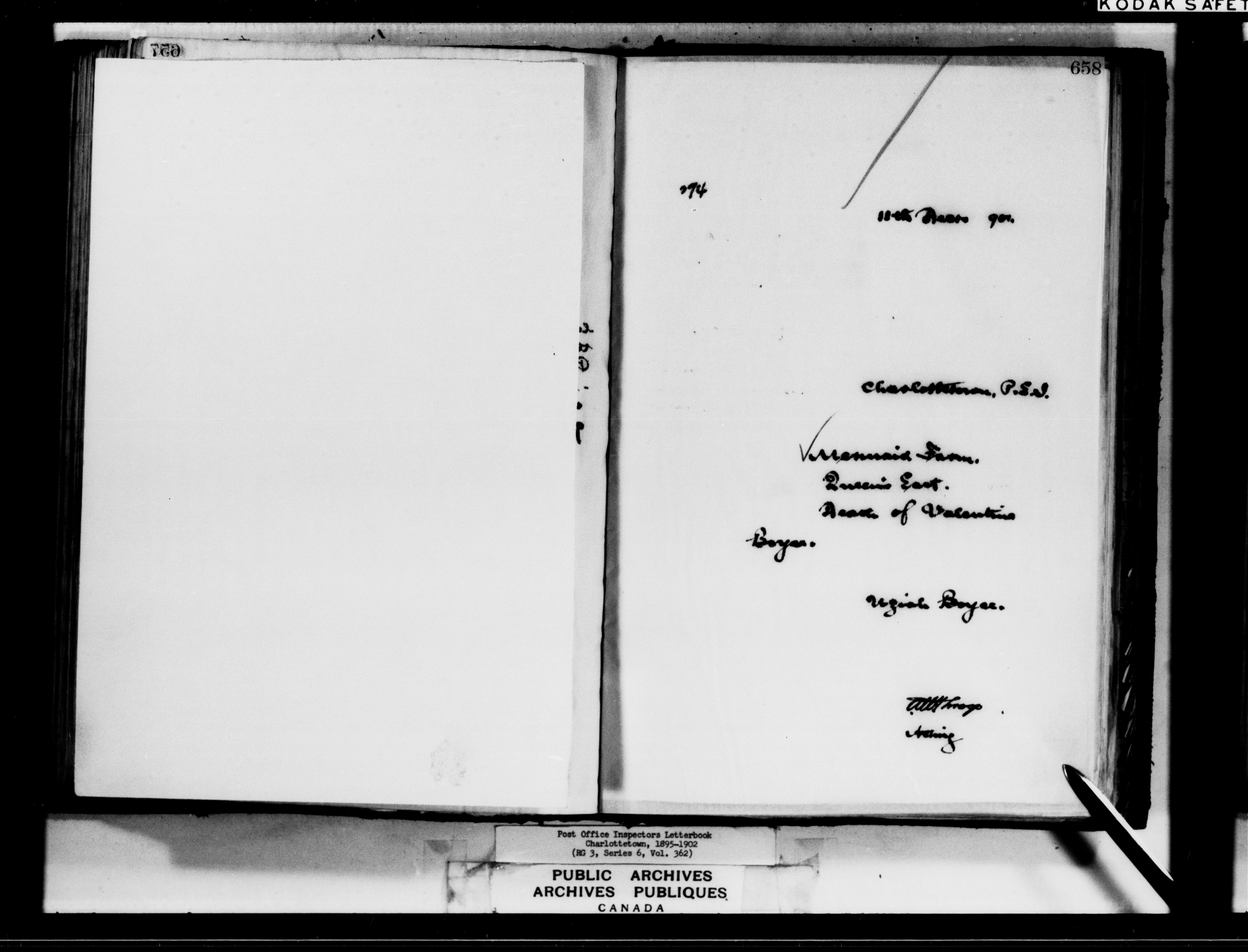 Correspondence from the Secretary to Post Office Inspectors : Letterbooks, Prince Edward Island, Charlottetown - 7266