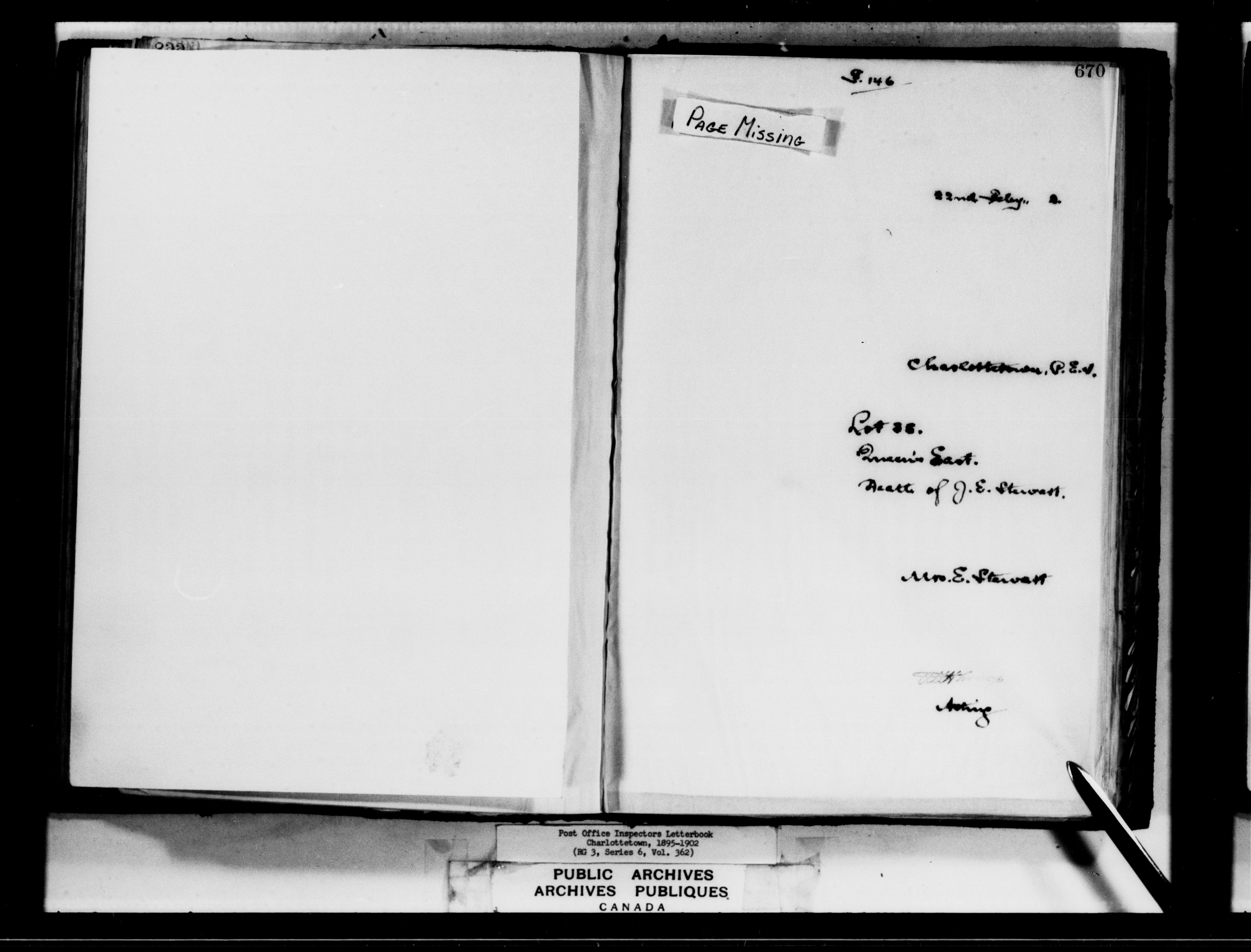 Correspondence from the Secretary to Post Office Inspectors : Letterbooks, Prince Edward Island, Charlottetown - 7266