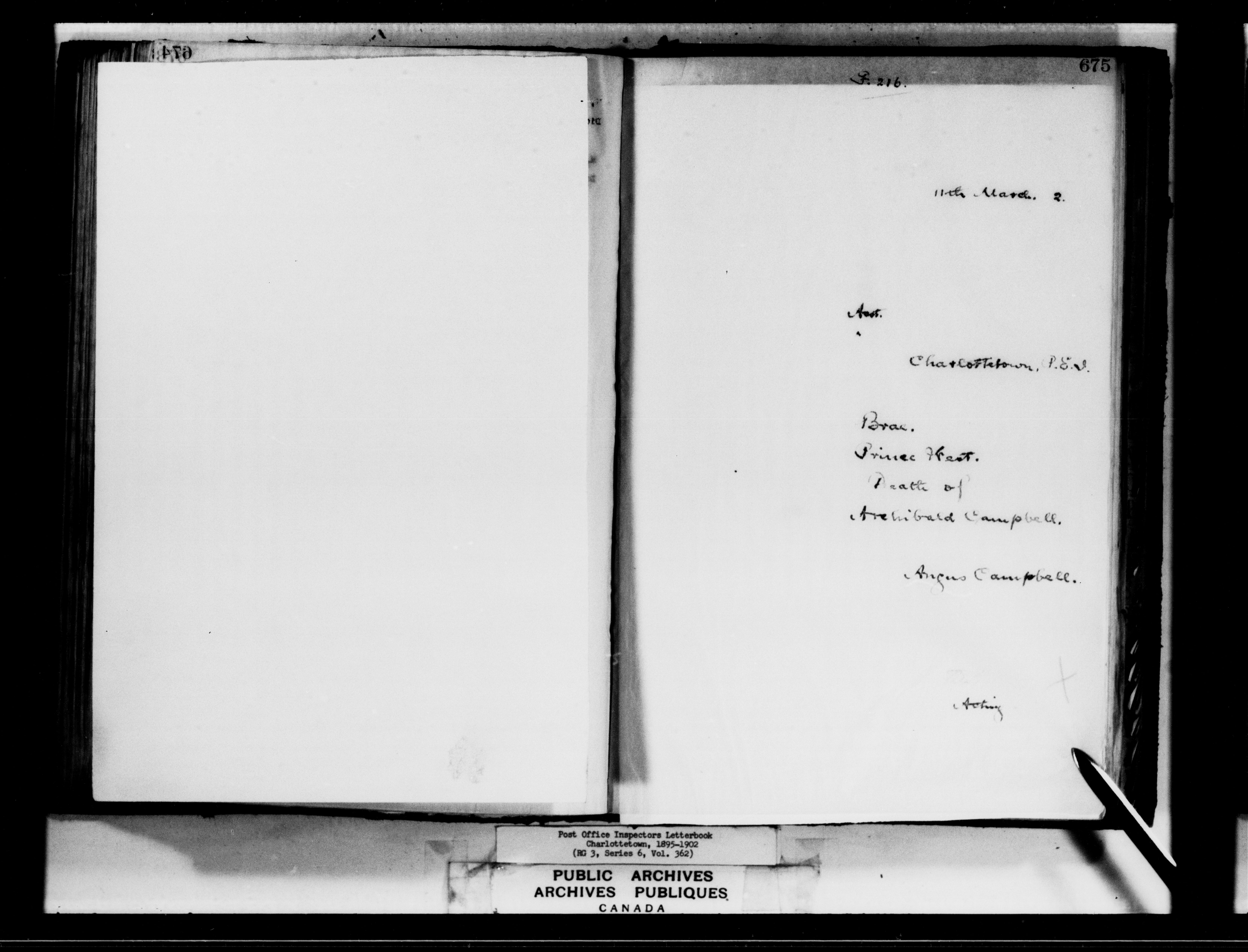Correspondence from the Secretary to Post Office Inspectors : Letterbooks, Prince Edward Island, Charlottetown - 7266