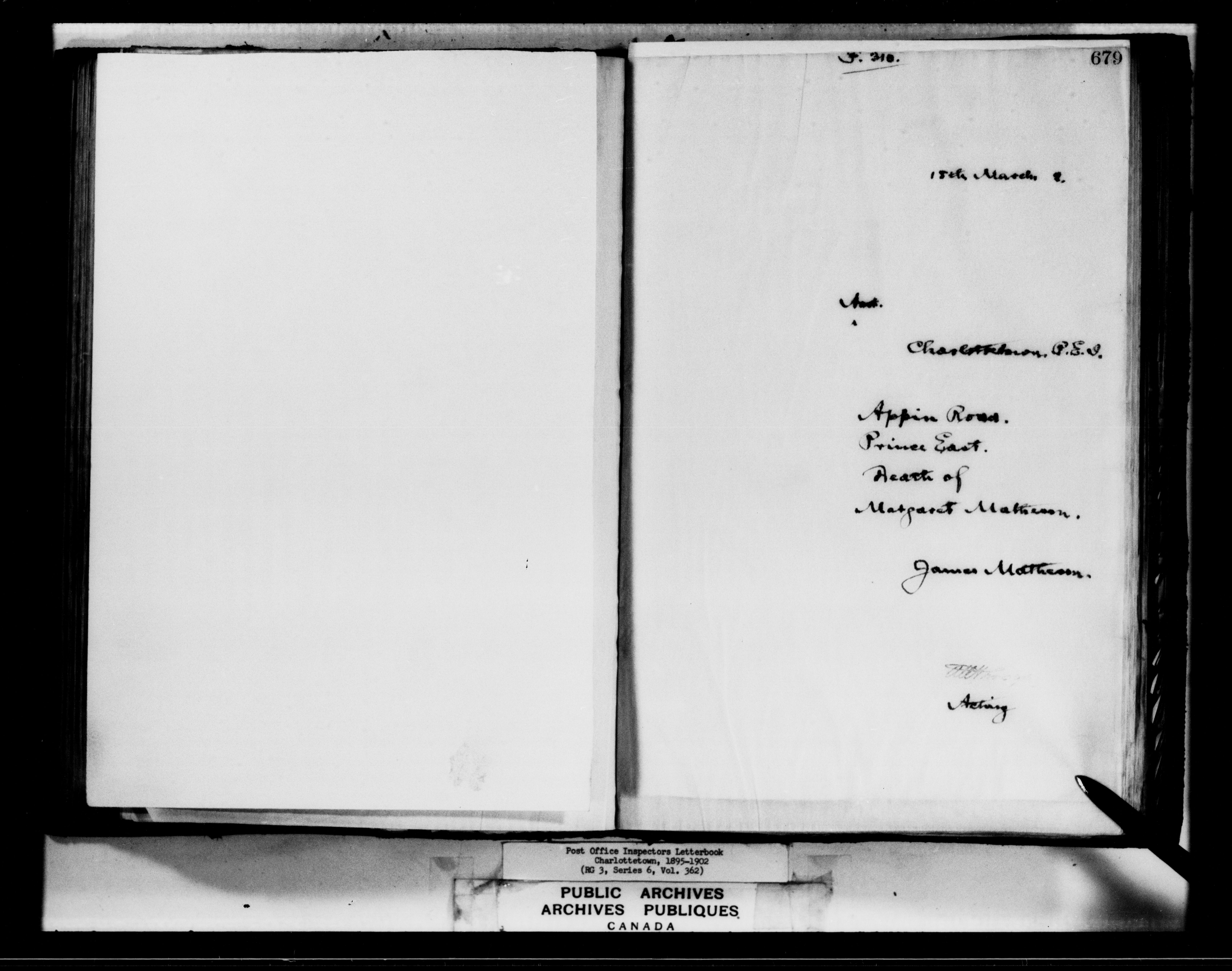 Correspondence from the Secretary to Post Office Inspectors : Letterbooks, Prince Edward Island, Charlottetown - 7266