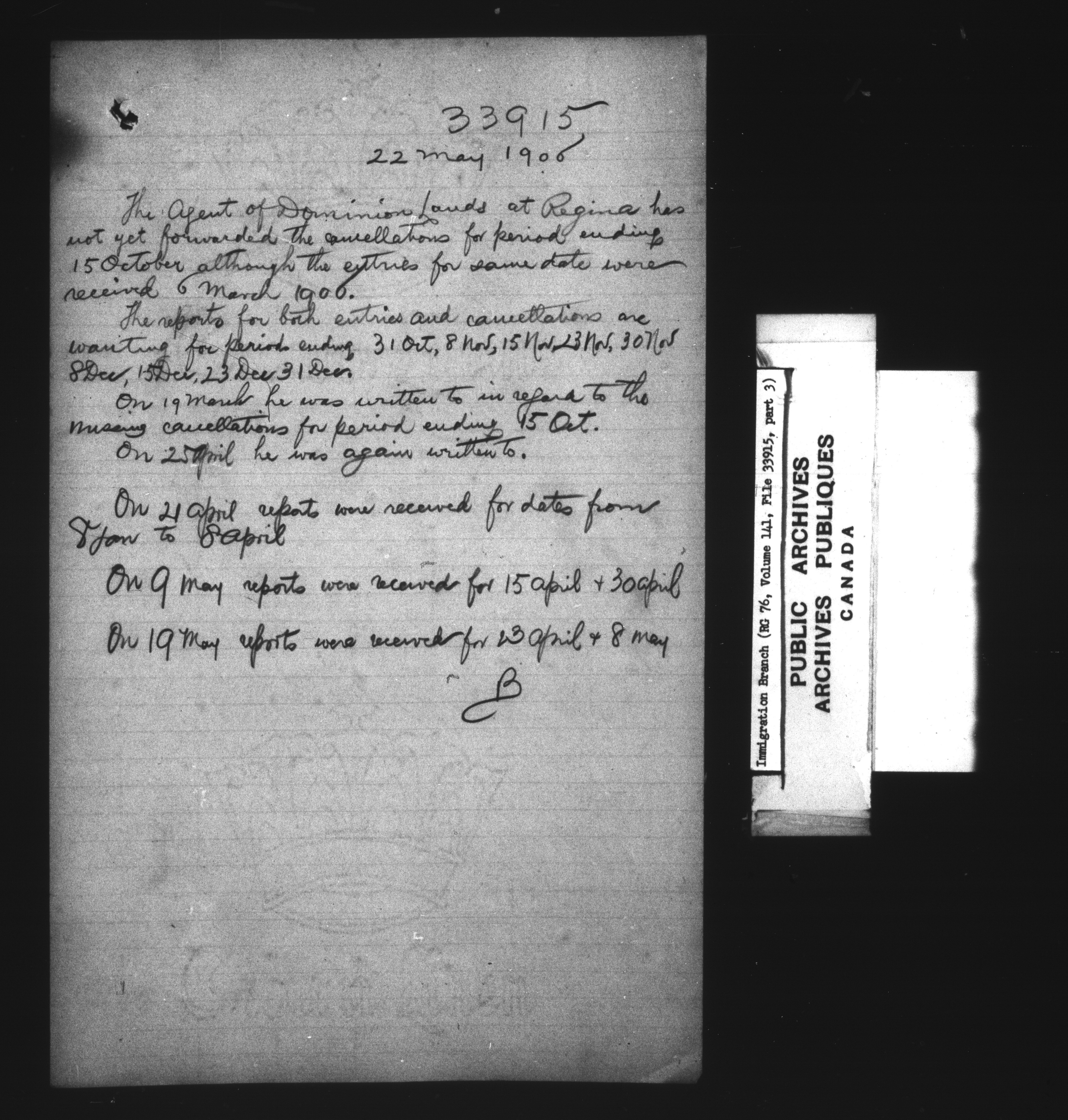 Subject, policy and case files in the First Central Registry series of the Immigration Program, 1892-1950 - 7298