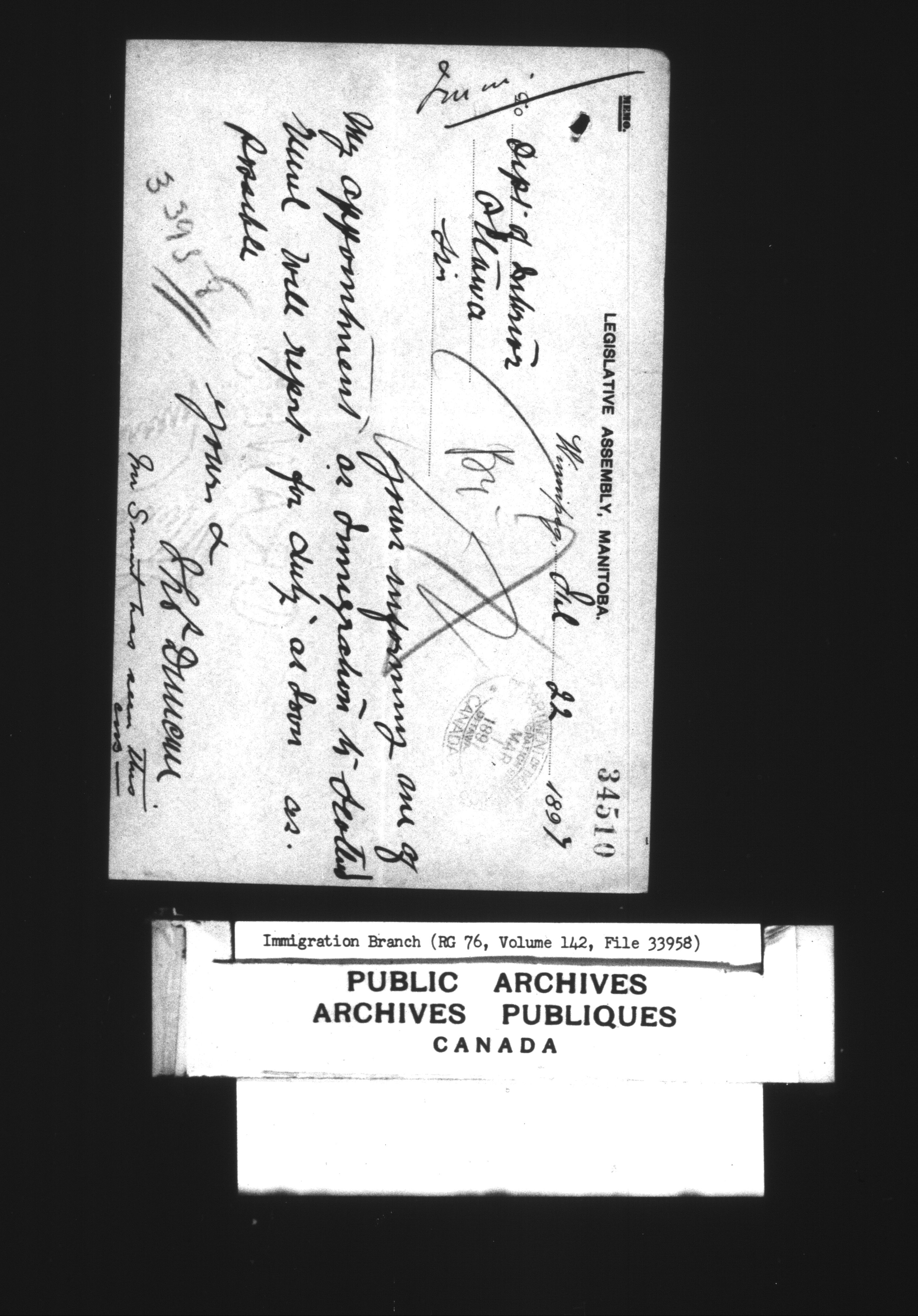 Subject, policy and case files in the First Central Registry series of the Immigration Program, 1892-1950 - 7299