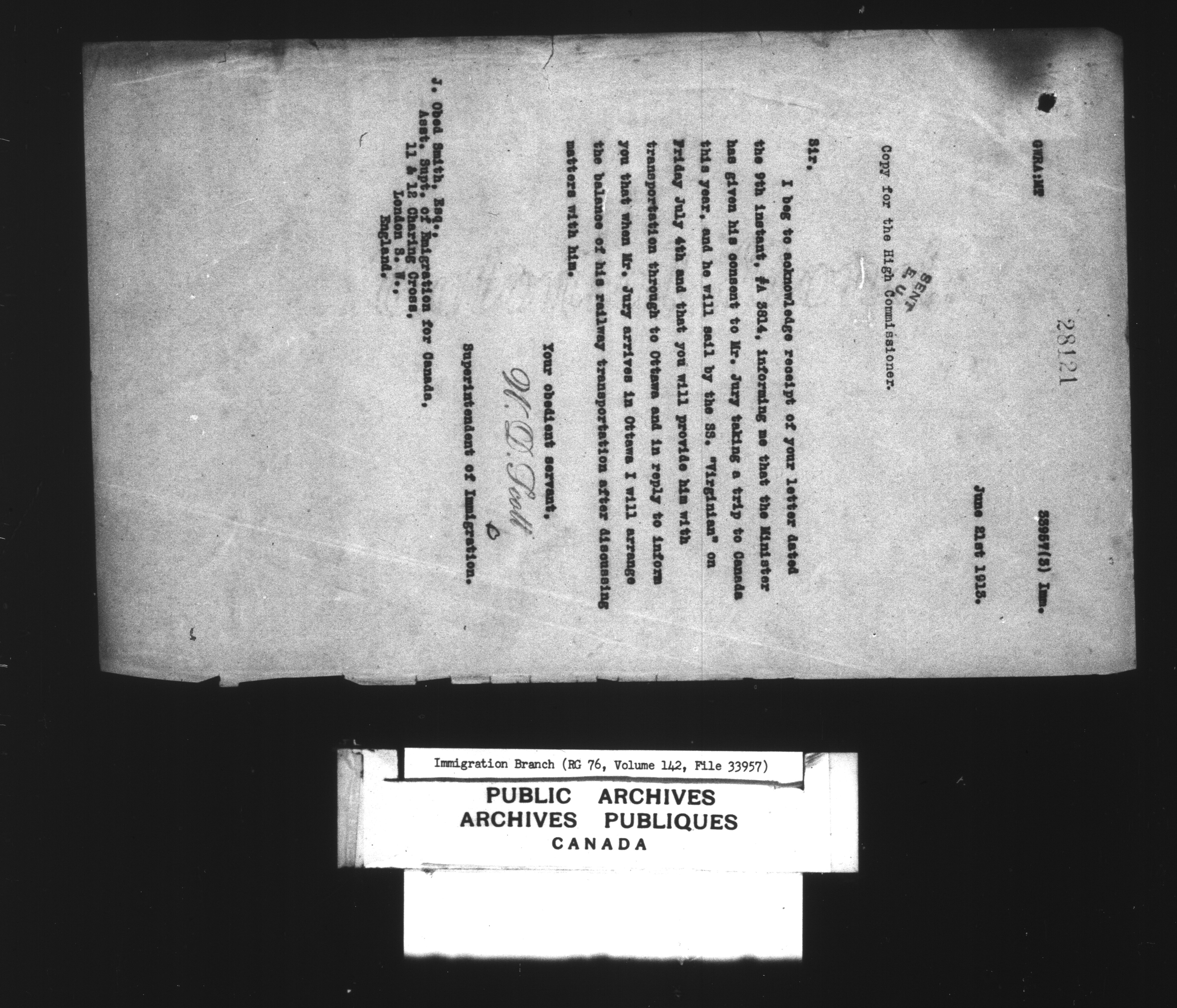 Subject, policy and case files in the First Central Registry series of the Immigration Program, 1892-1950 - 7299