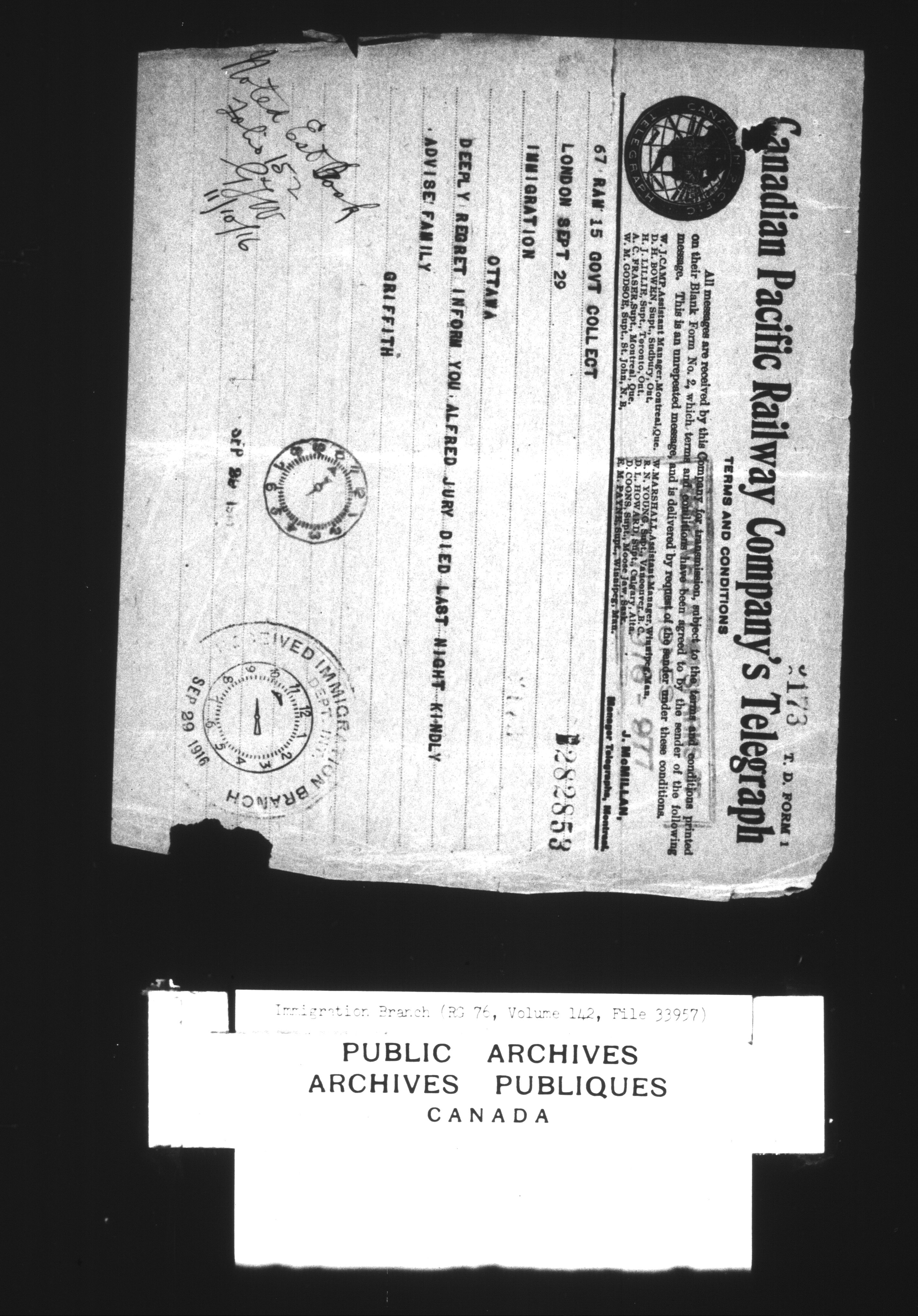 Subject, policy and case files in the First Central Registry series of the Immigration Program, 1892-1950 - 7299