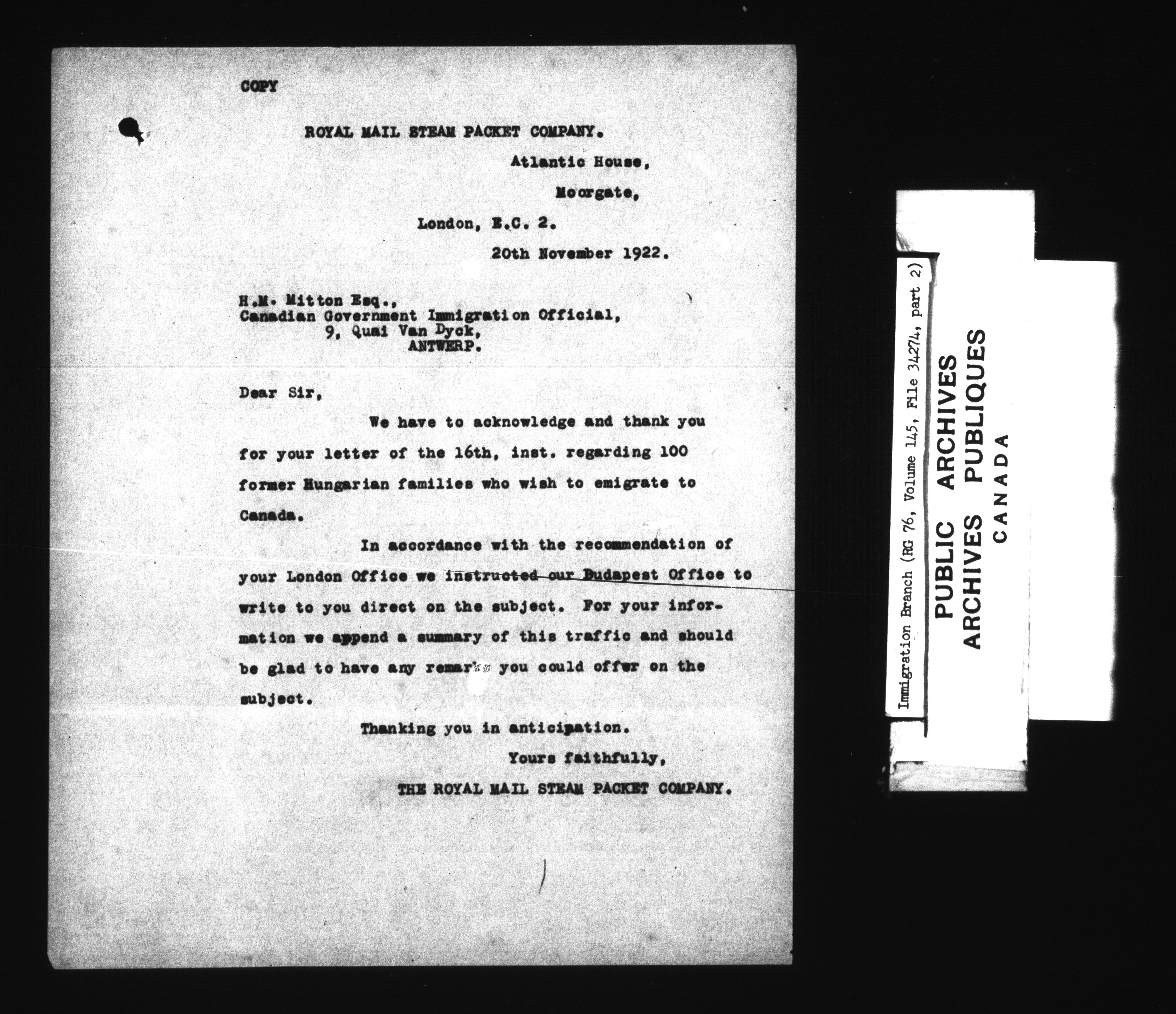 Subject, policy and case files in the First Central Registry series of the Immigration Program, 1892-1950 - 7301