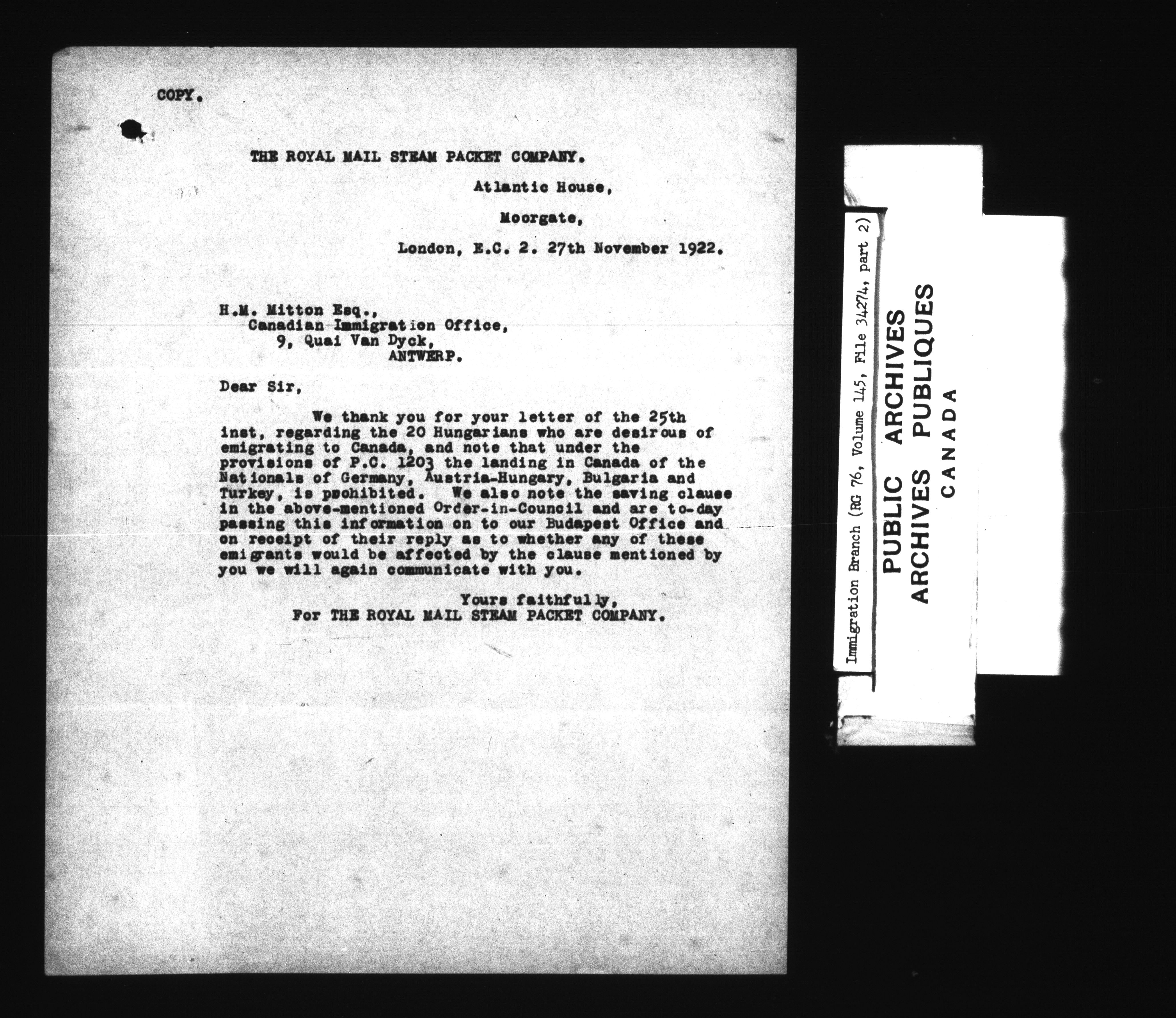 Subject, policy and case files in the First Central Registry series of the Immigration Program, 1892-1950 - 7301