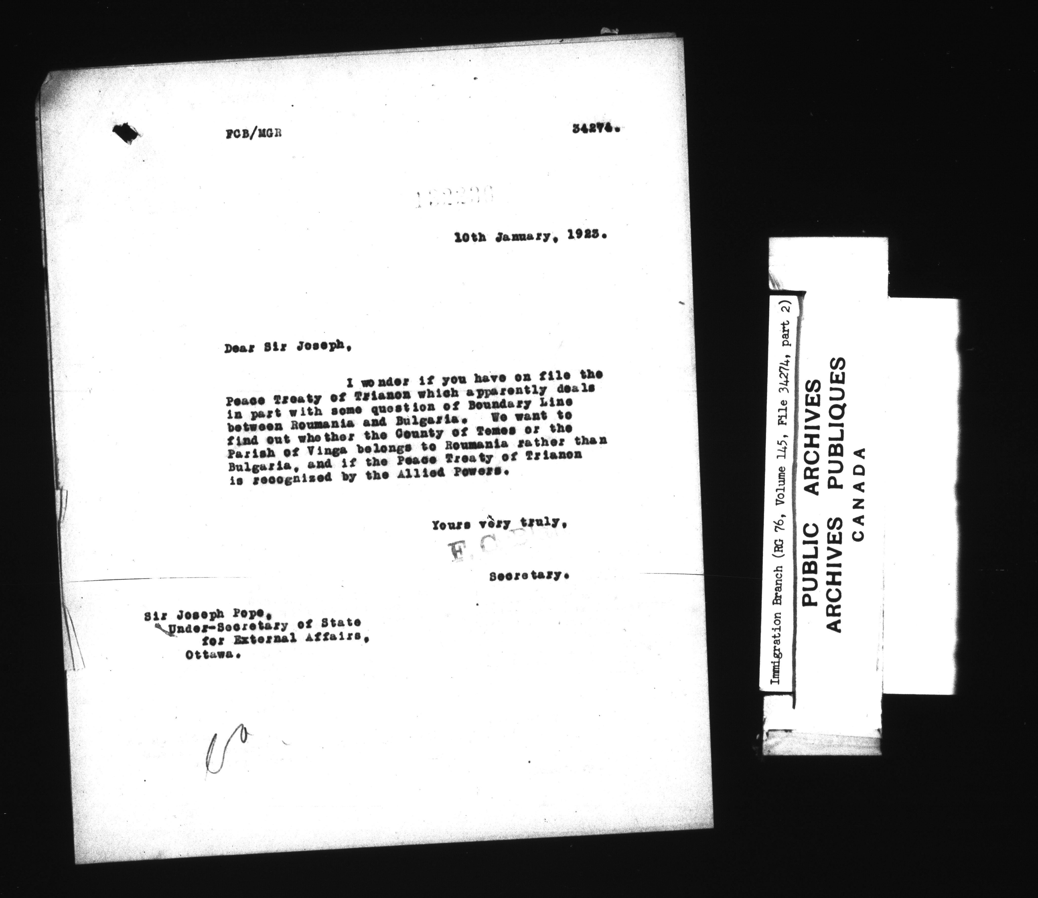 Subject, policy and case files in the First Central Registry series of the Immigration Program, 1892-1950 - 7301