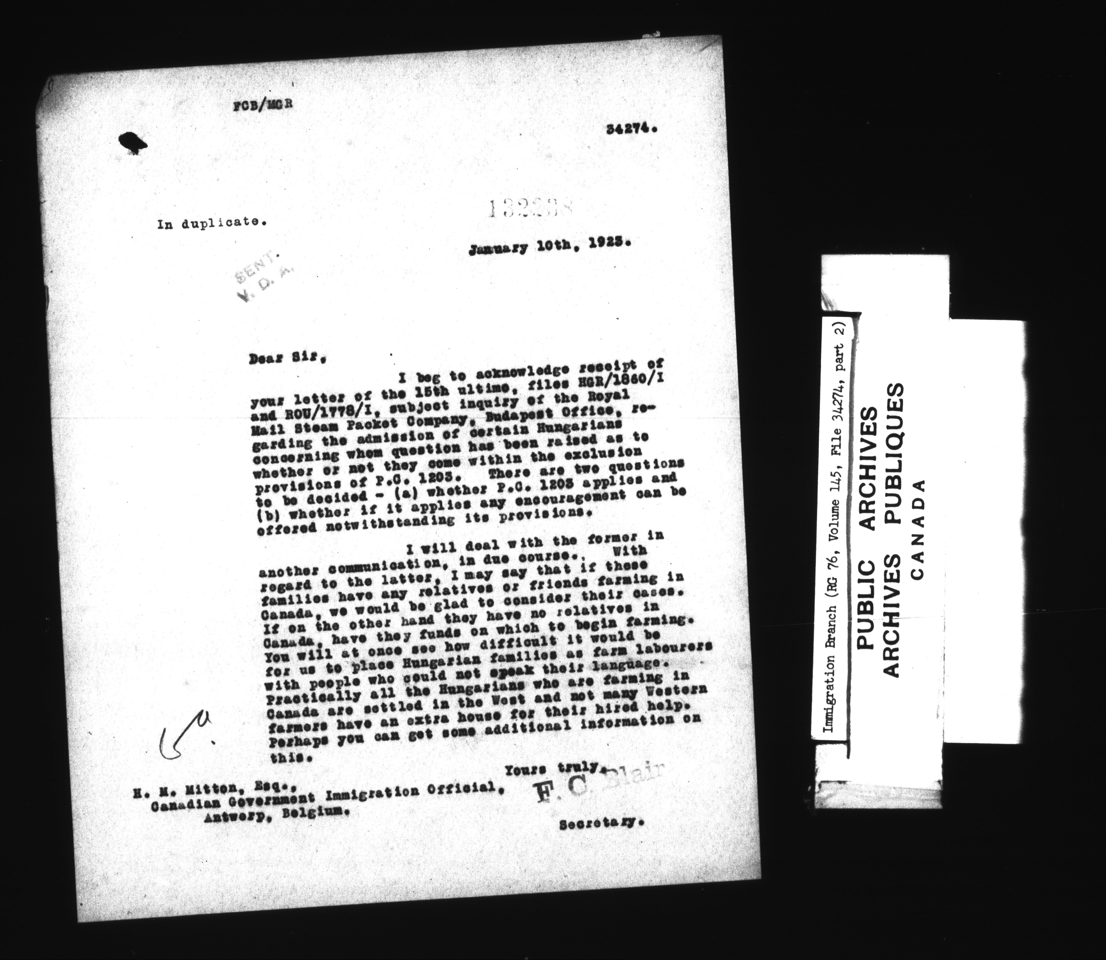 Subject, policy and case files in the First Central Registry series of the Immigration Program, 1892-1950 - 7301