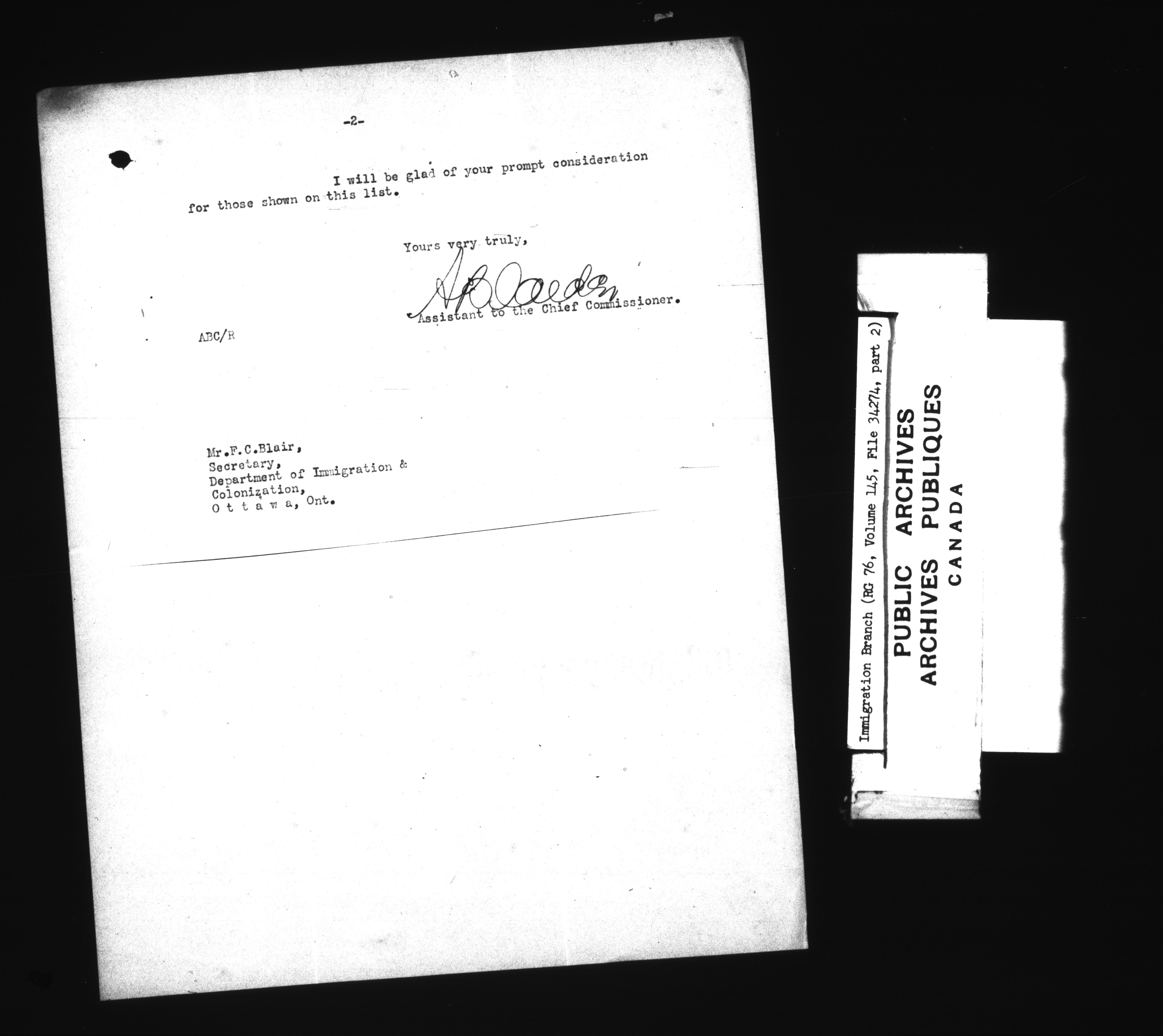Subject, policy and case files in the First Central Registry series of the Immigration Program, 1892-1950 - 7301