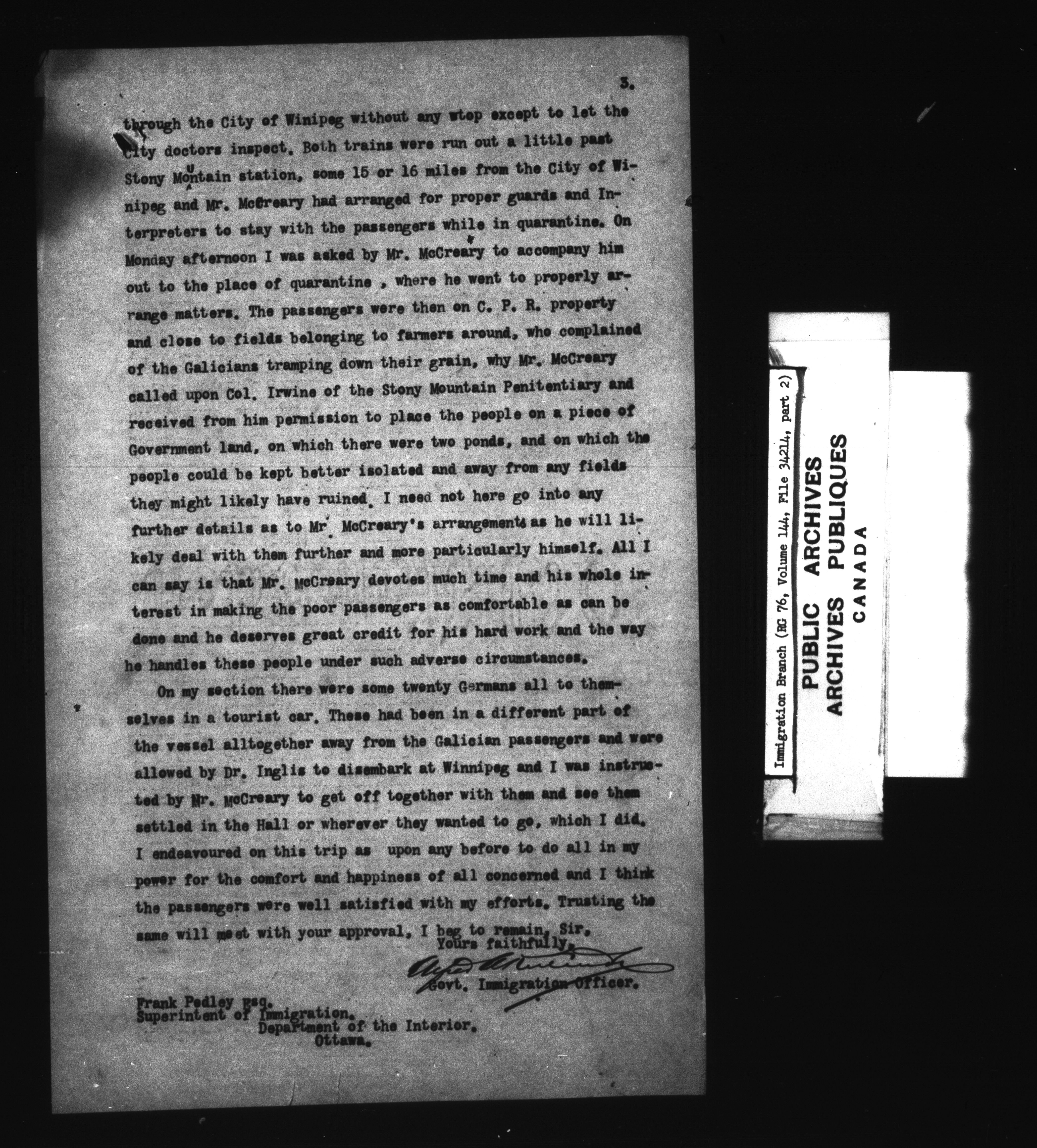 Subject, policy and case files in the First Central Registry series of the Immigration Program, 1892-1950 - 7301
