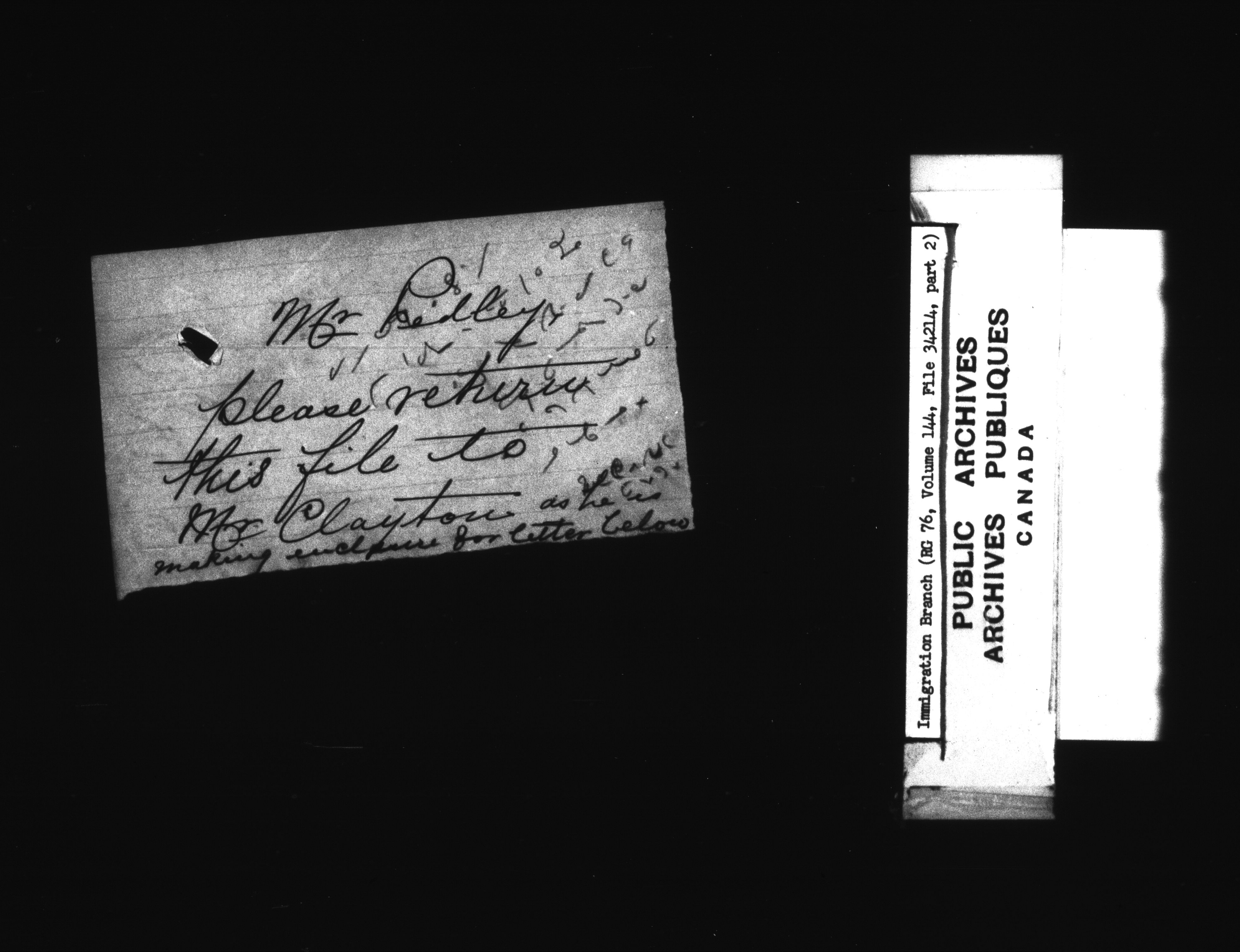 Subject, policy and case files in the First Central Registry series of the Immigration Program, 1892-1950 - 7301