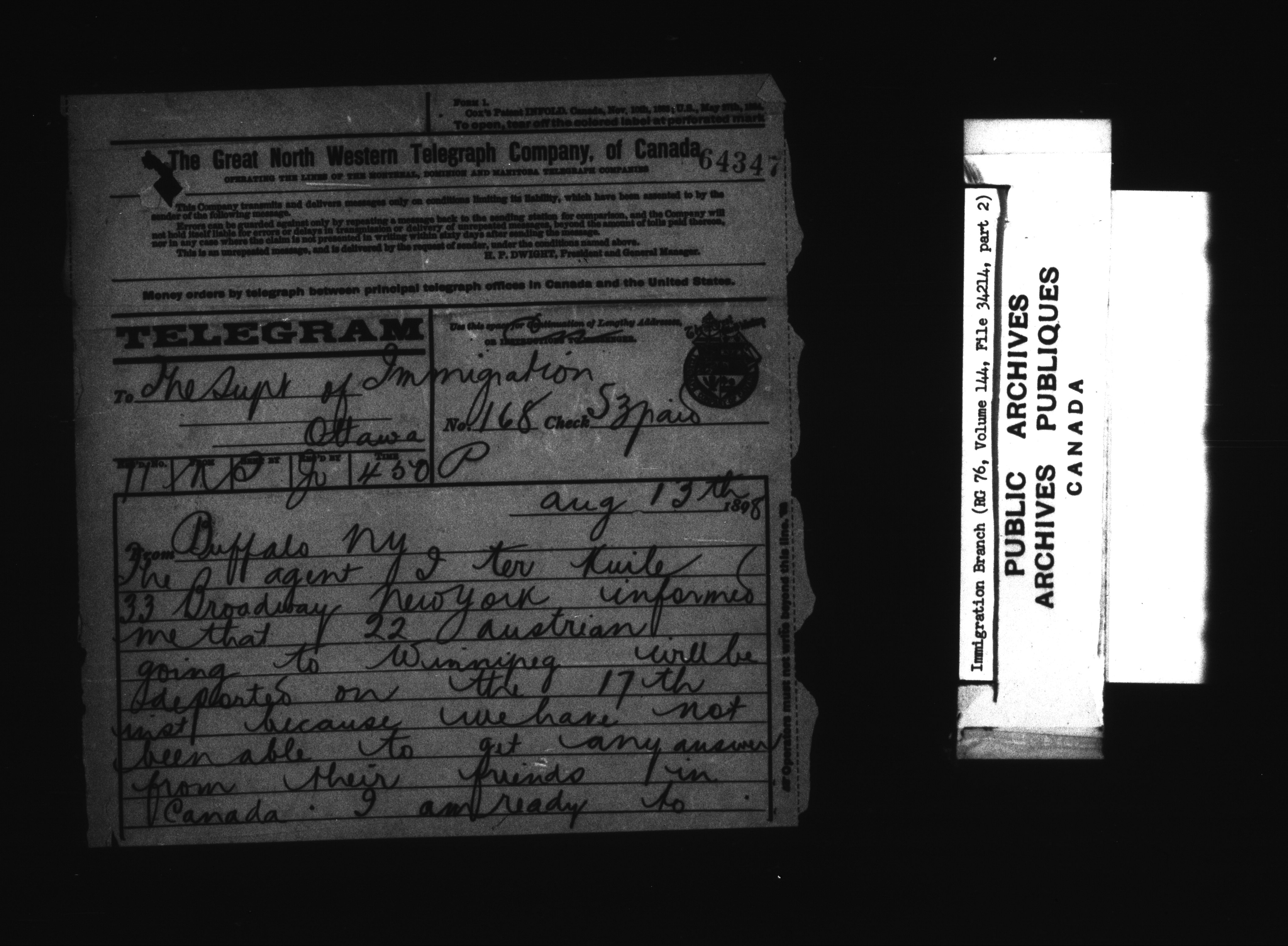 Subject, policy and case files in the First Central Registry series of the Immigration Program, 1892-1950 - 7301