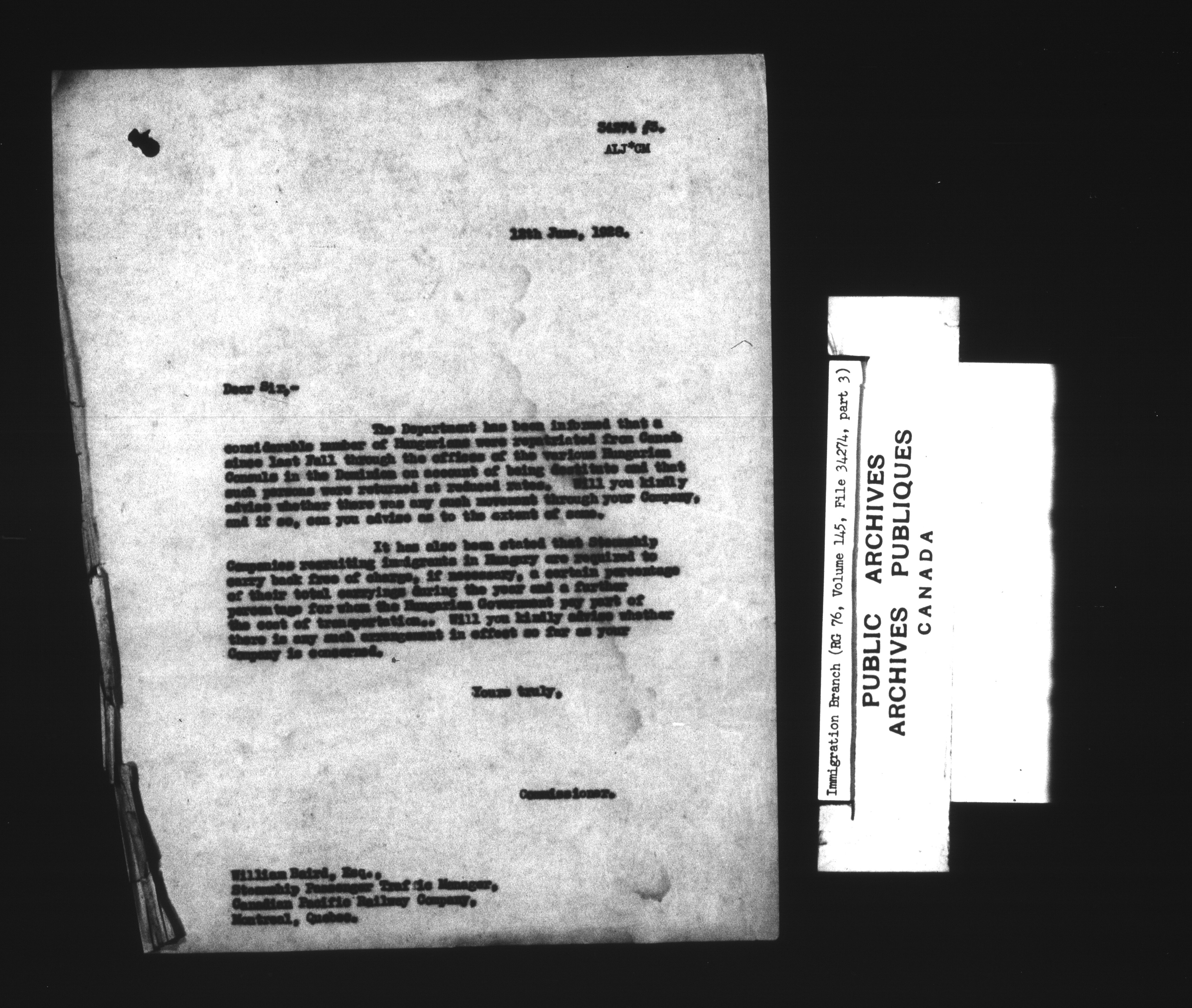 Subject, policy and case files in the First Central Registry series of the Immigration Program, 1892-1950 - 7302