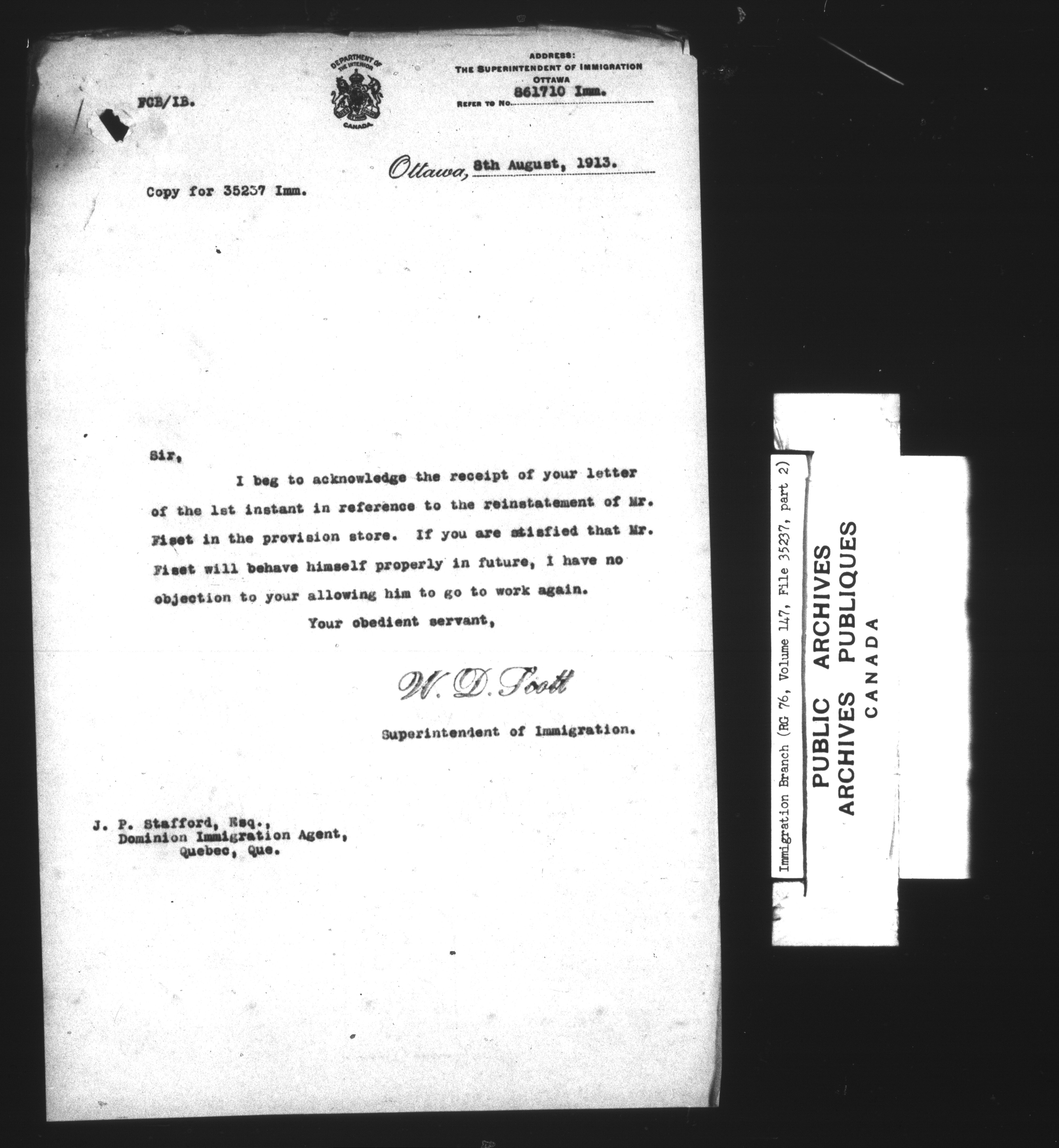 Subject, policy and case files in the First Central Registry series of the Immigration Program, 1892-1950 - 7303