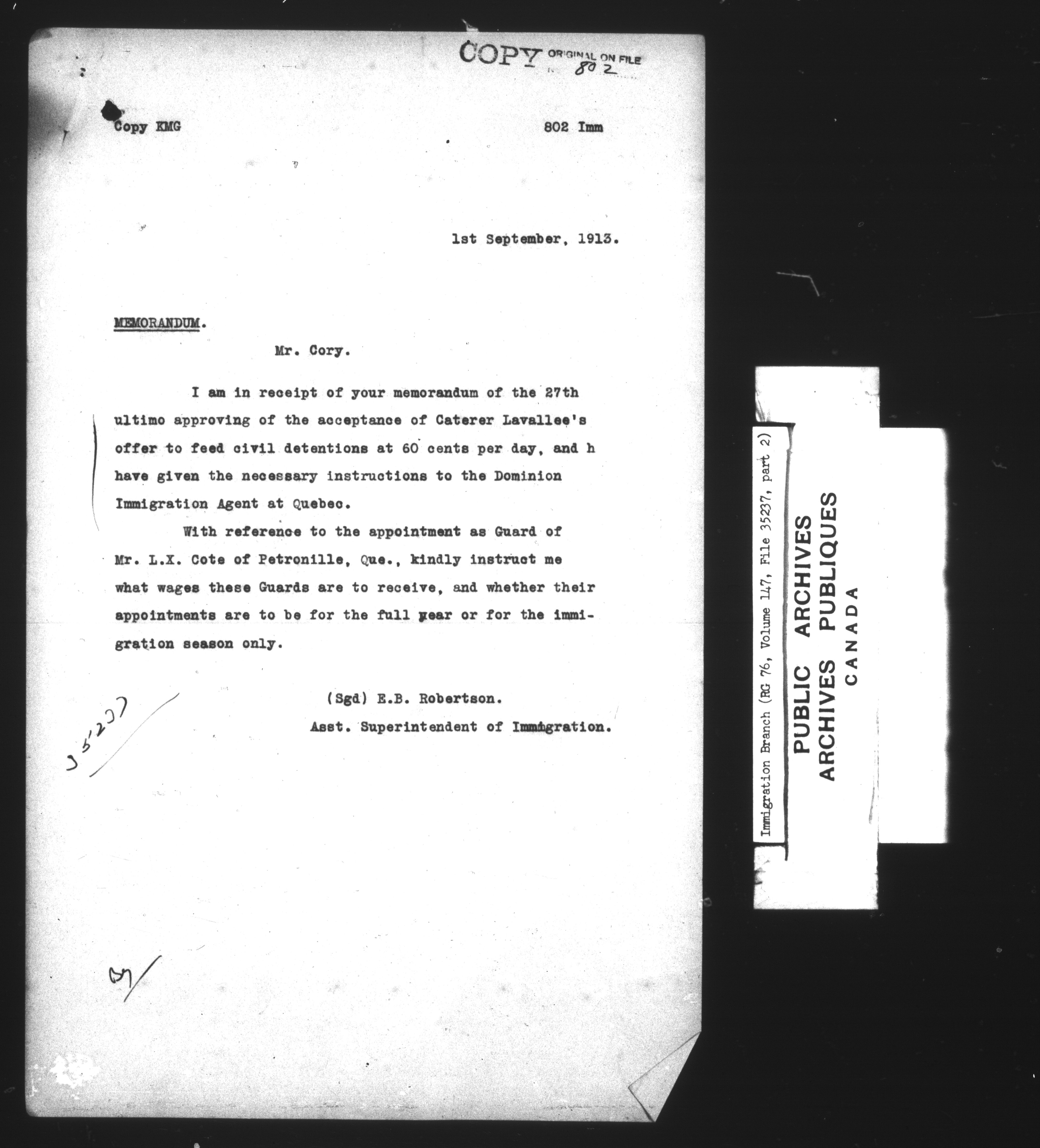 Subject, policy and case files in the First Central Registry series of the Immigration Program, 1892-1950 - 7303