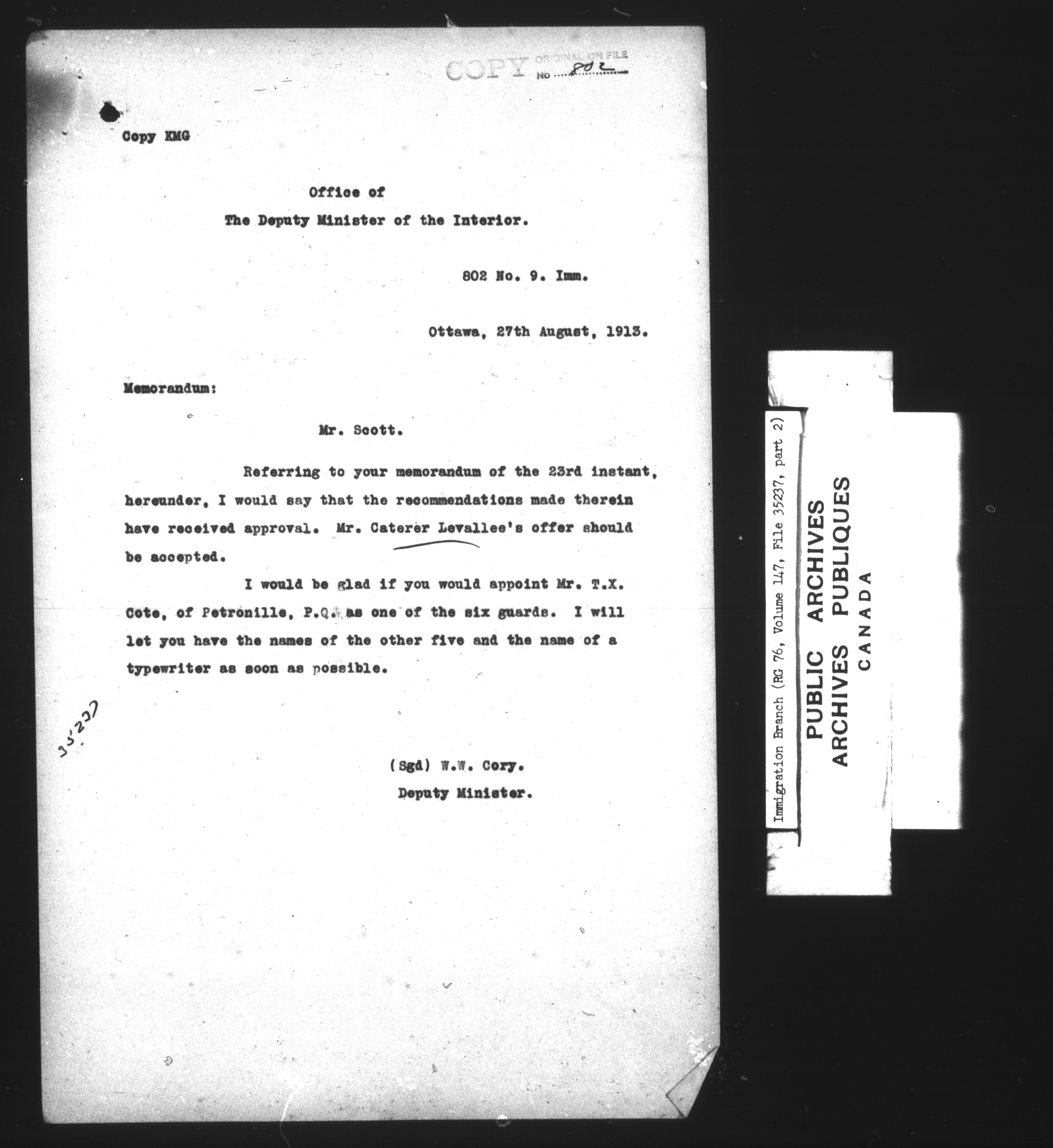 Subject, policy and case files in the First Central Registry series of the Immigration Program, 1892-1950 - 7303