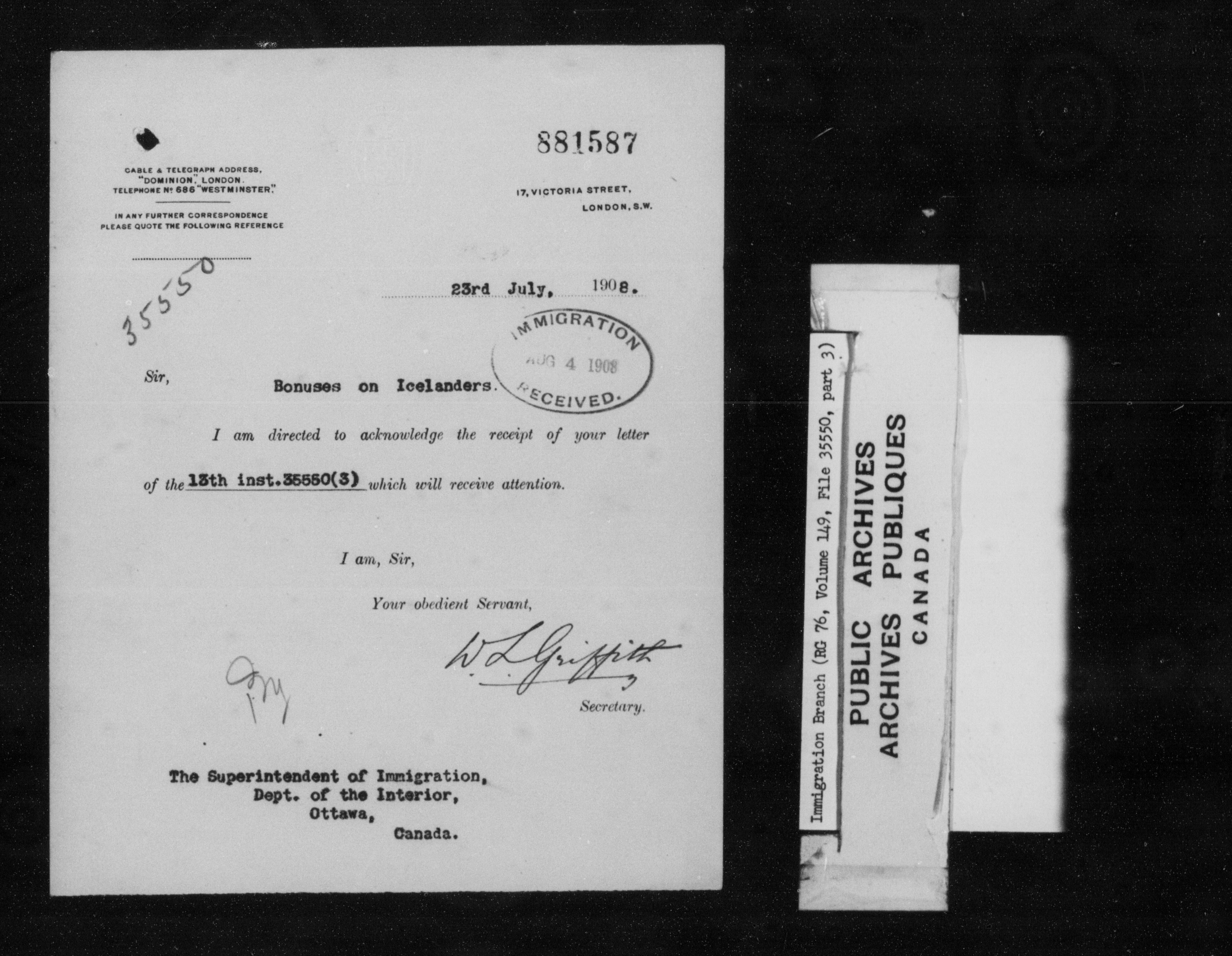 Subject, policy and case files in the First Central Registry series of the Immigration Program, 1892-1950 - 7306