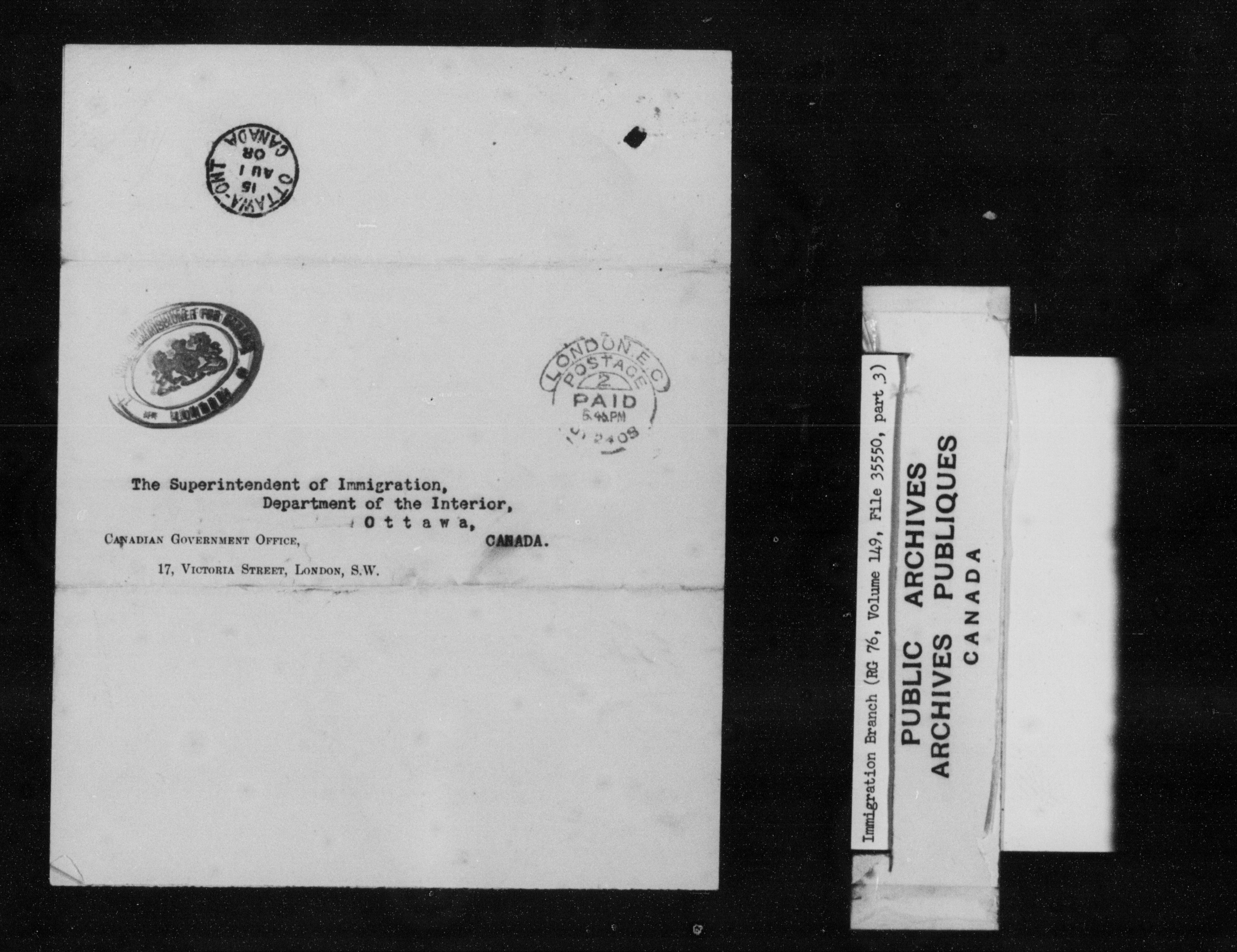 Subject, policy and case files in the First Central Registry series of the Immigration Program, 1892-1950 - 7306