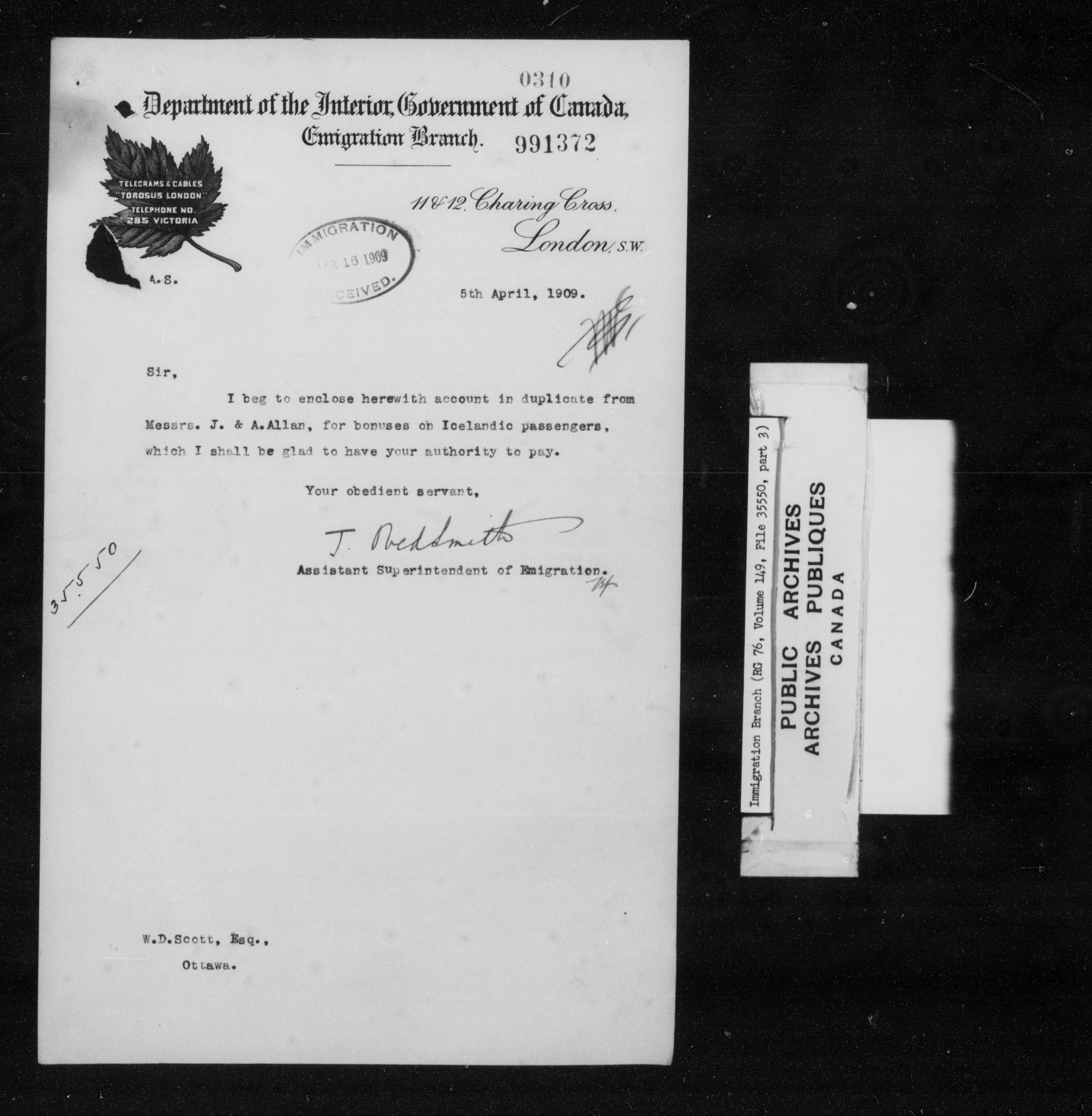Subject, policy and case files in the First Central Registry series of the Immigration Program, 1892-1950 - 7306