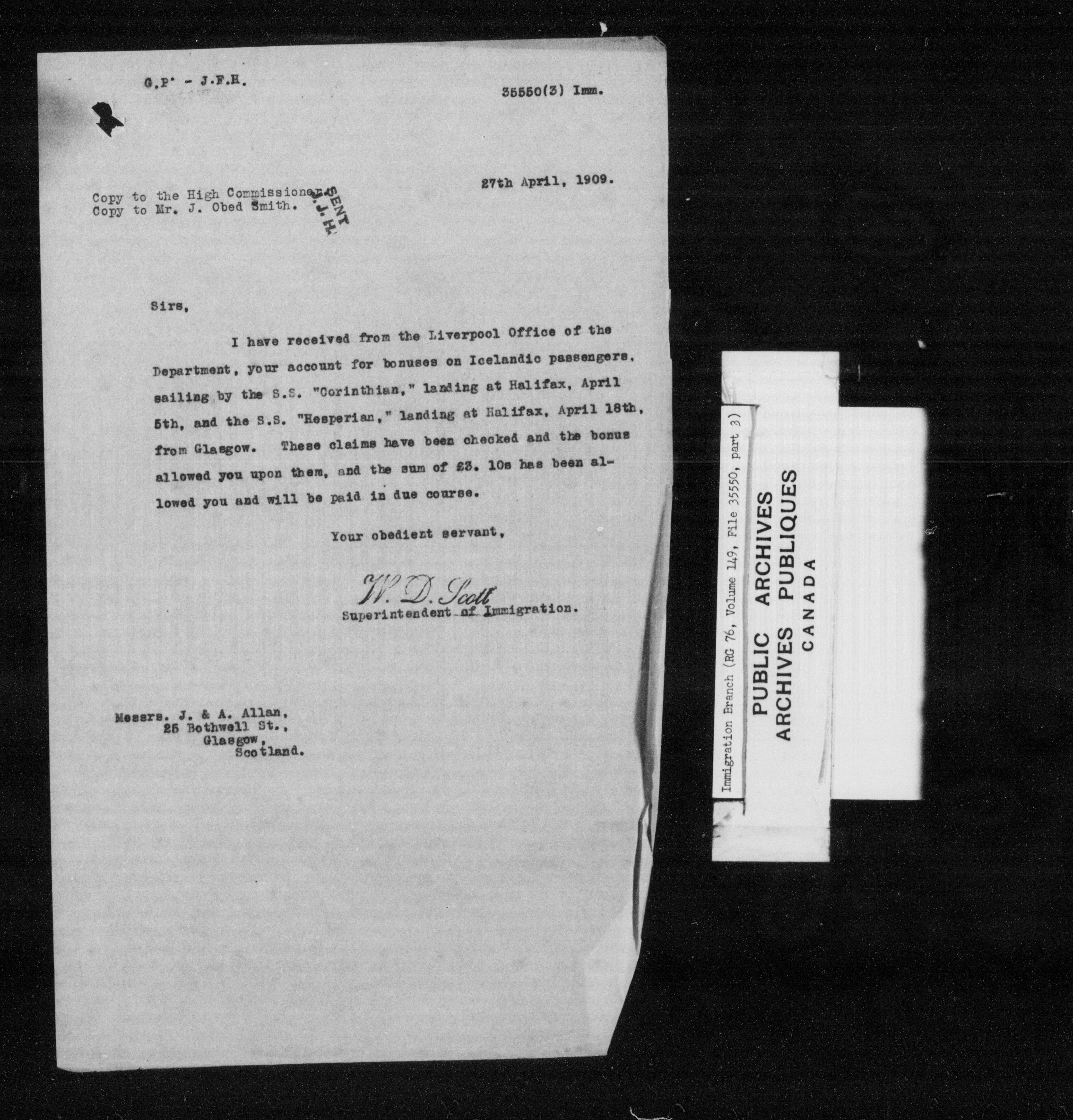Subject, policy and case files in the First Central Registry series of the Immigration Program, 1892-1950 - 7306