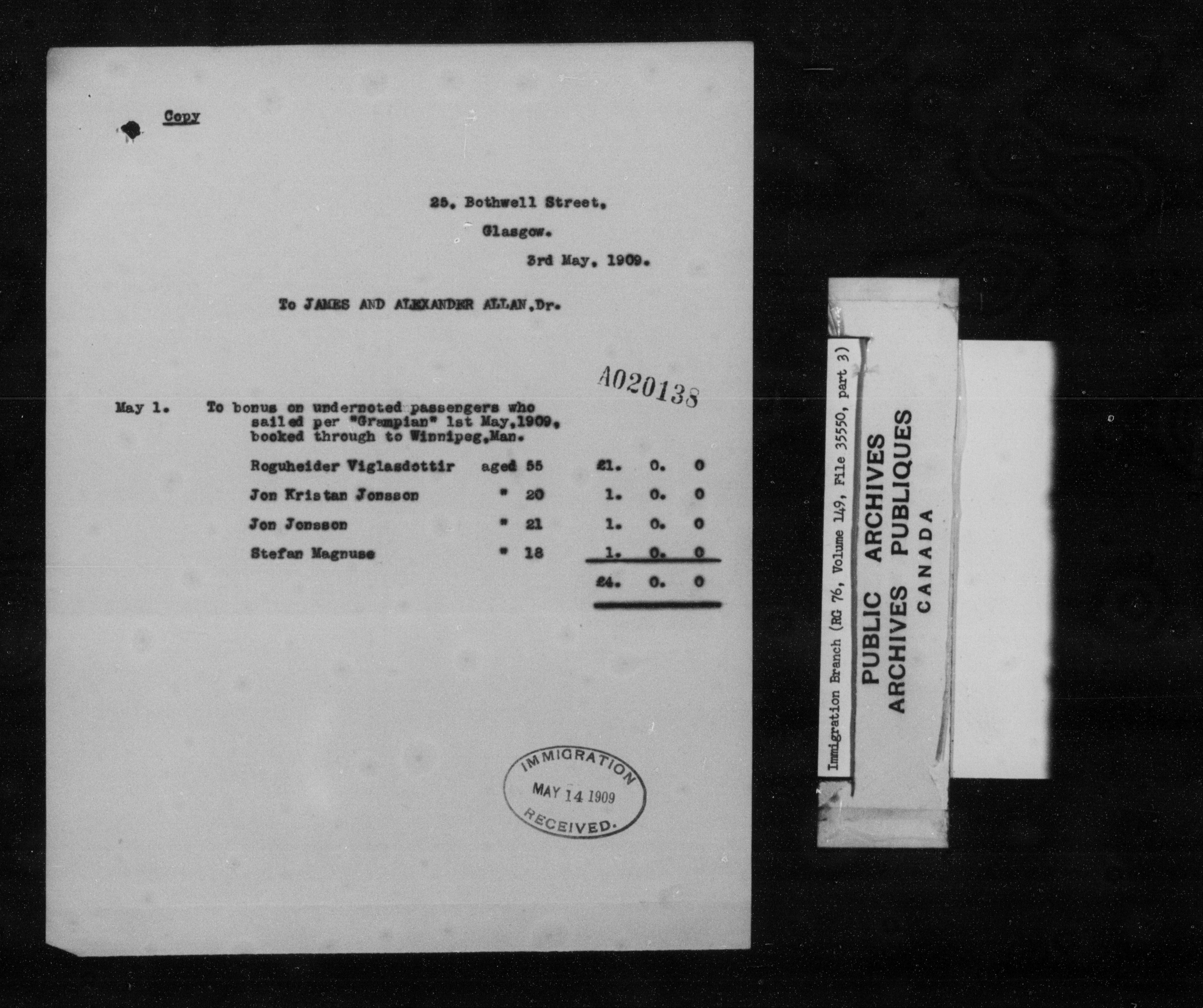 Subject, policy and case files in the First Central Registry series of the Immigration Program, 1892-1950 - 7306