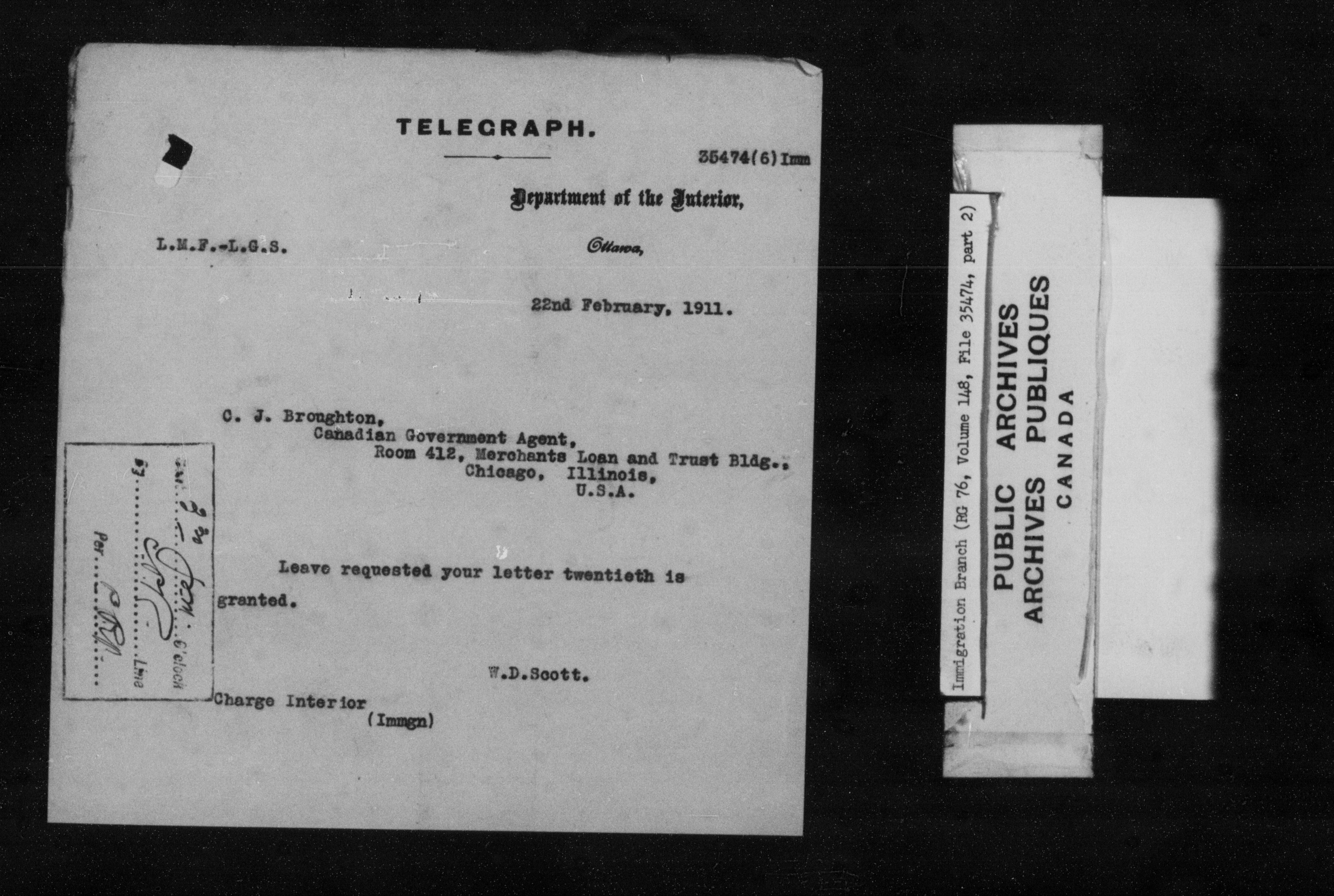 Subject, policy and case files in the First Central Registry series of the Immigration Program, 1892-1950 - 7306