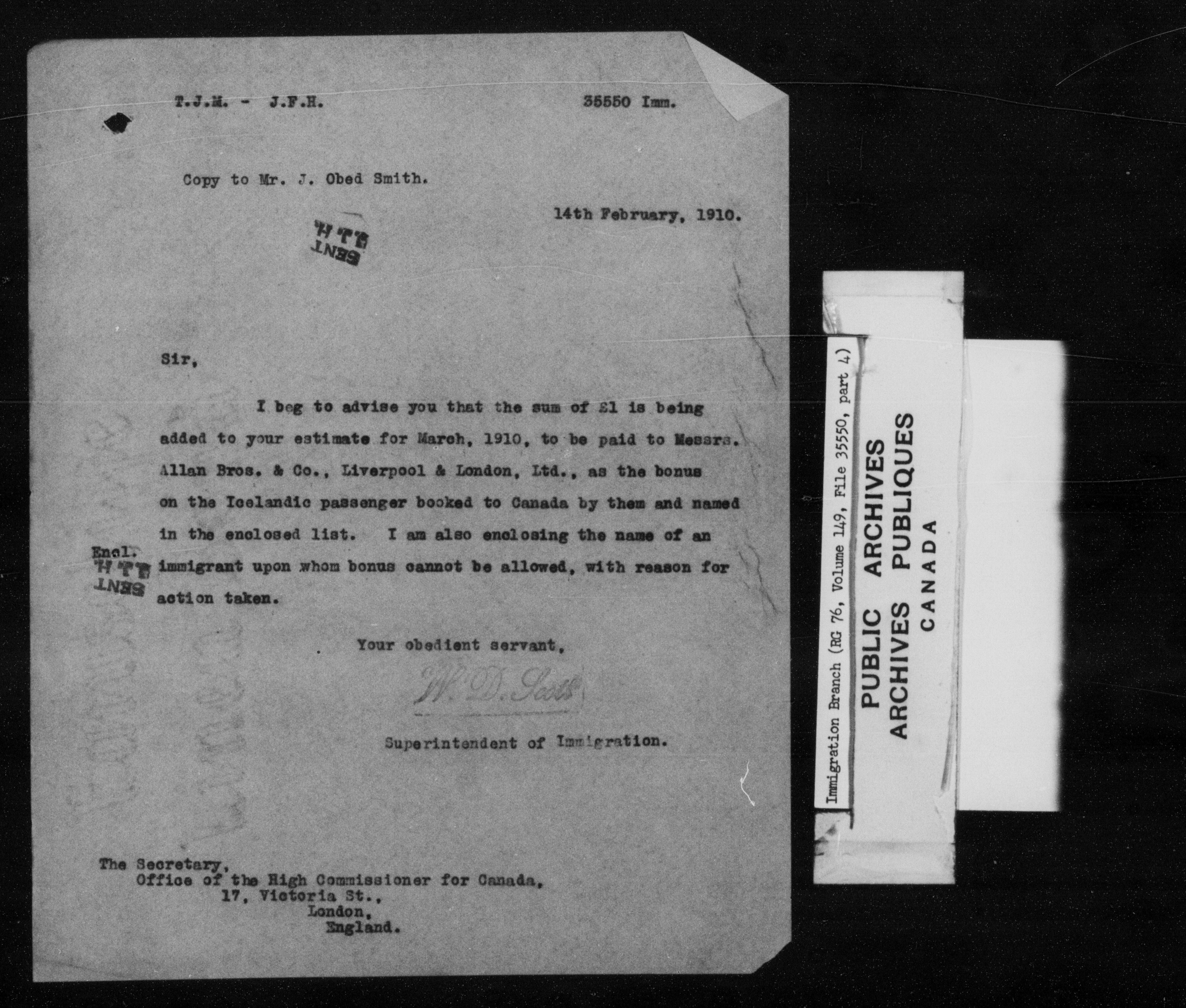 Subject, policy and case files in the First Central Registry series of the Immigration Program, 1892-1950 - 7307
