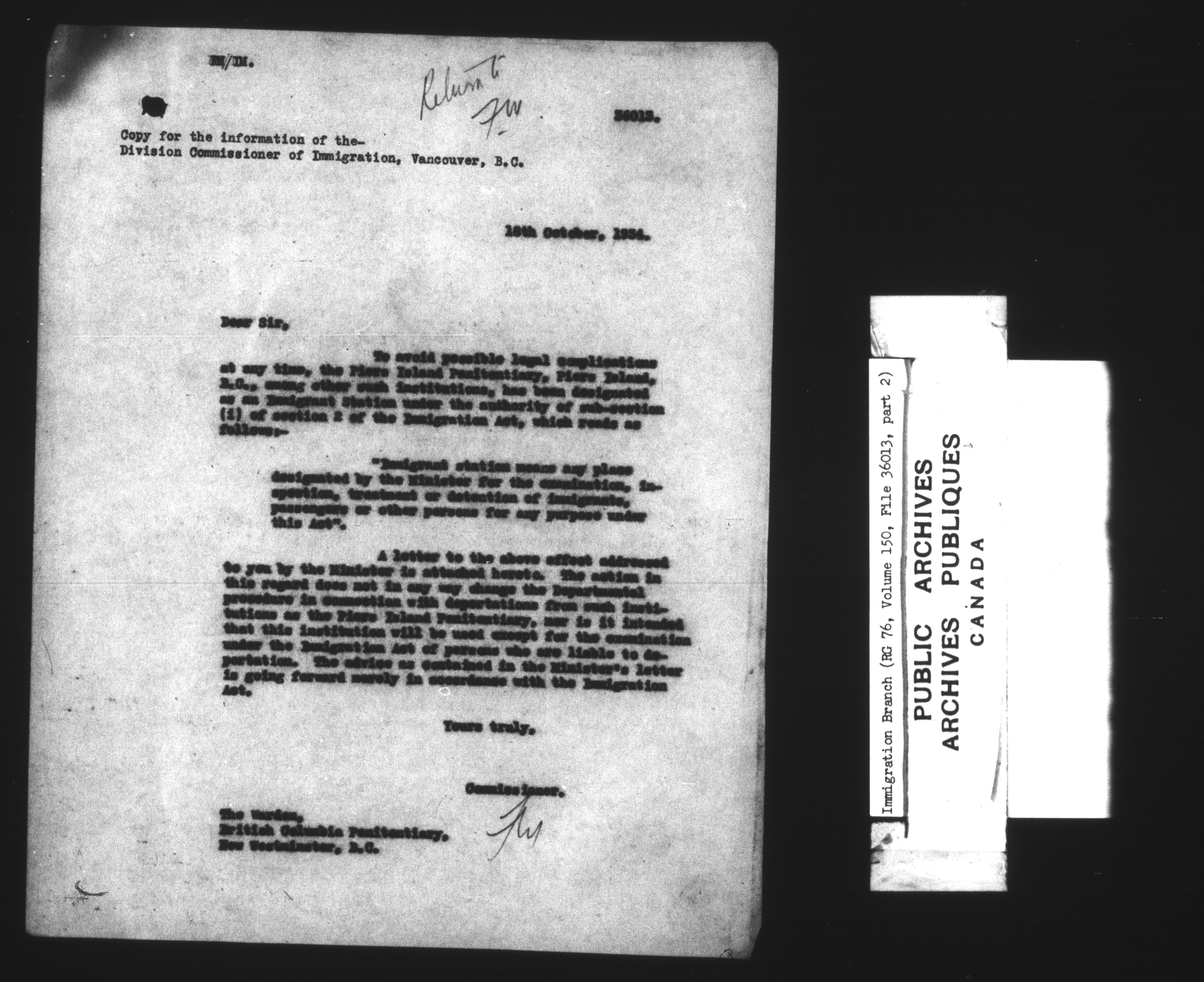 Subject, policy and case files in the First Central Registry series of the Immigration Program, 1892-1950 - 7308