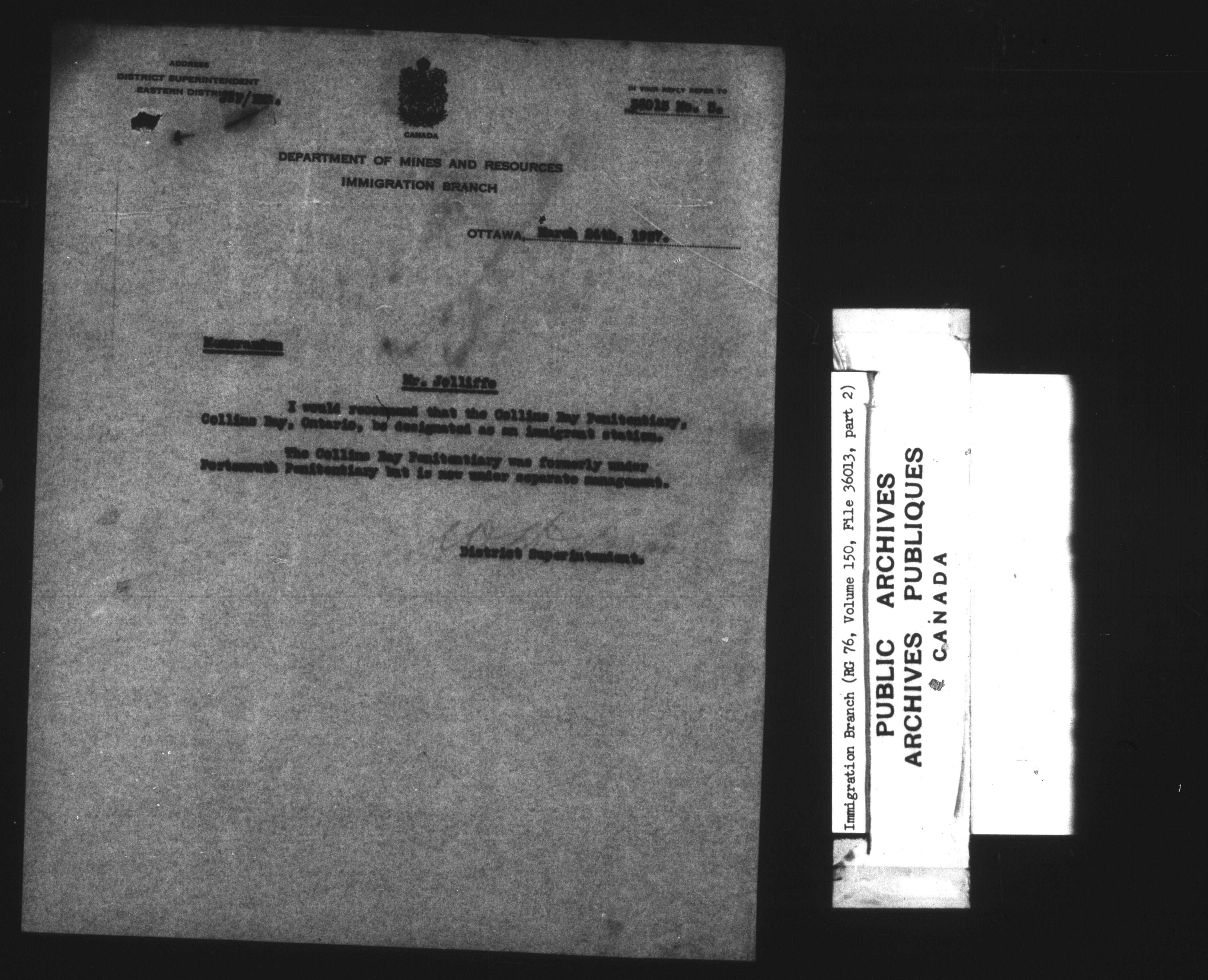 Subject, policy and case files in the First Central Registry series of the Immigration Program, 1892-1950 - 7308