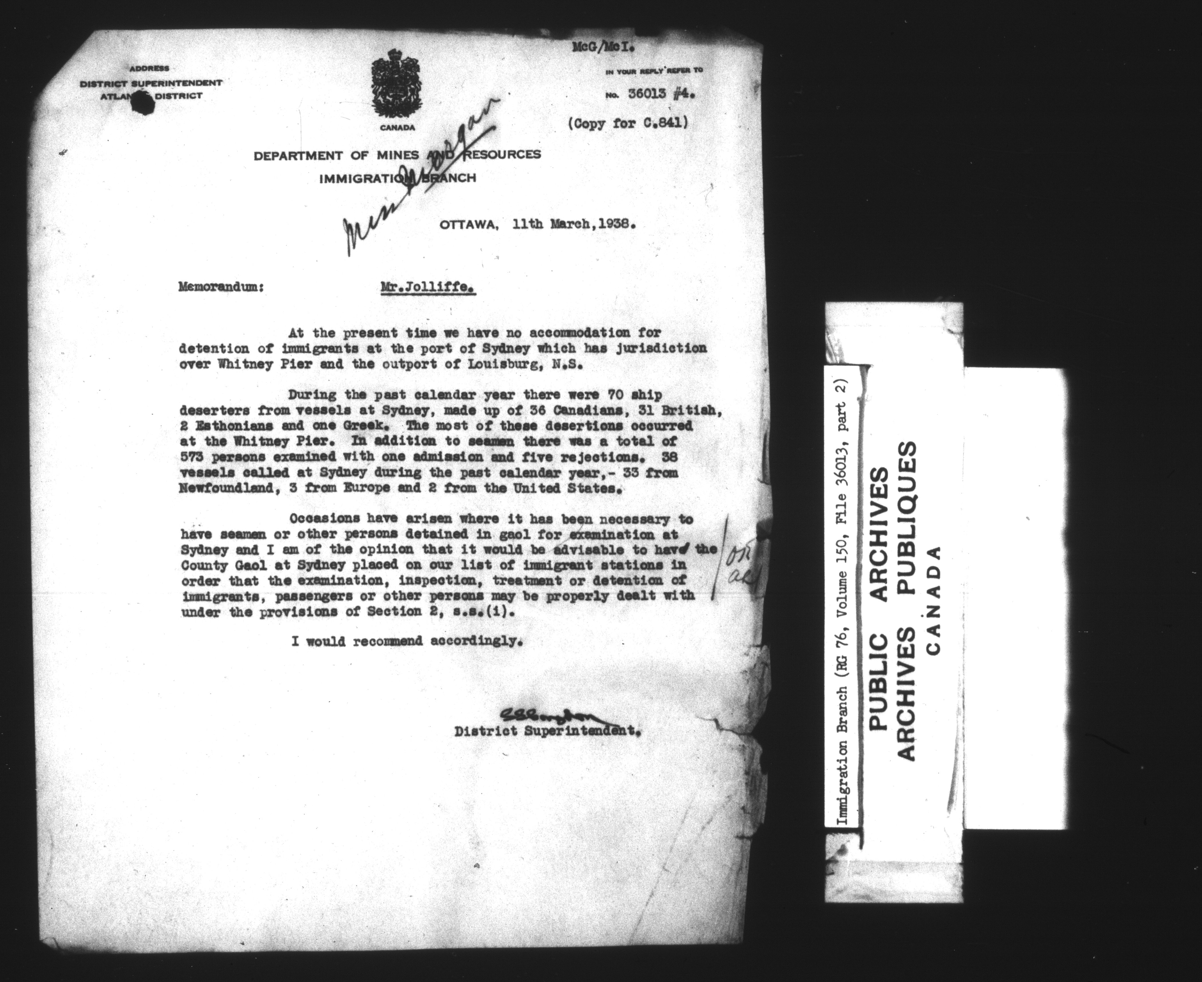 Subject, policy and case files in the First Central Registry series of the Immigration Program, 1892-1950 - 7308