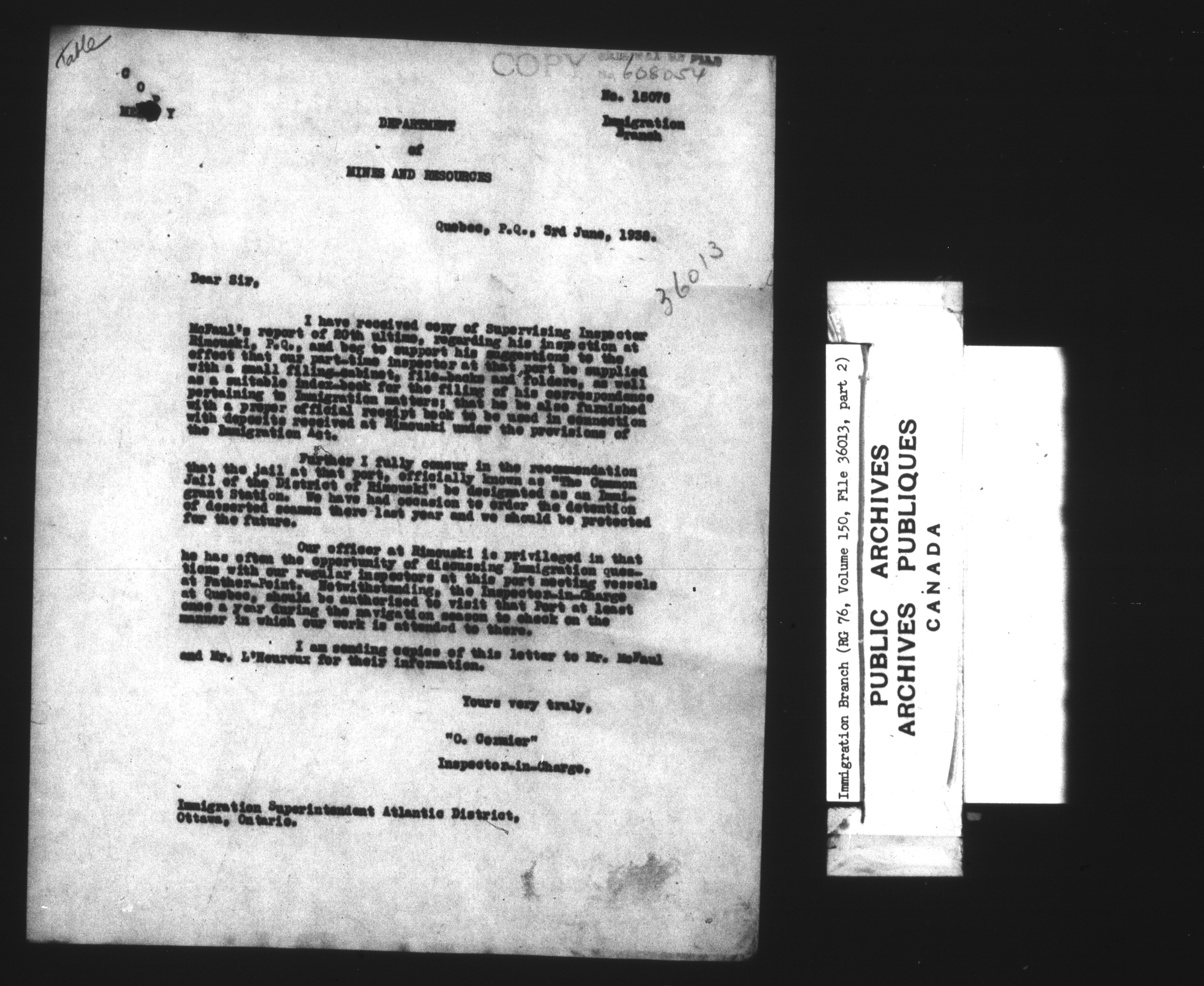 Subject, policy and case files in the First Central Registry series of the Immigration Program, 1892-1950 - 7308