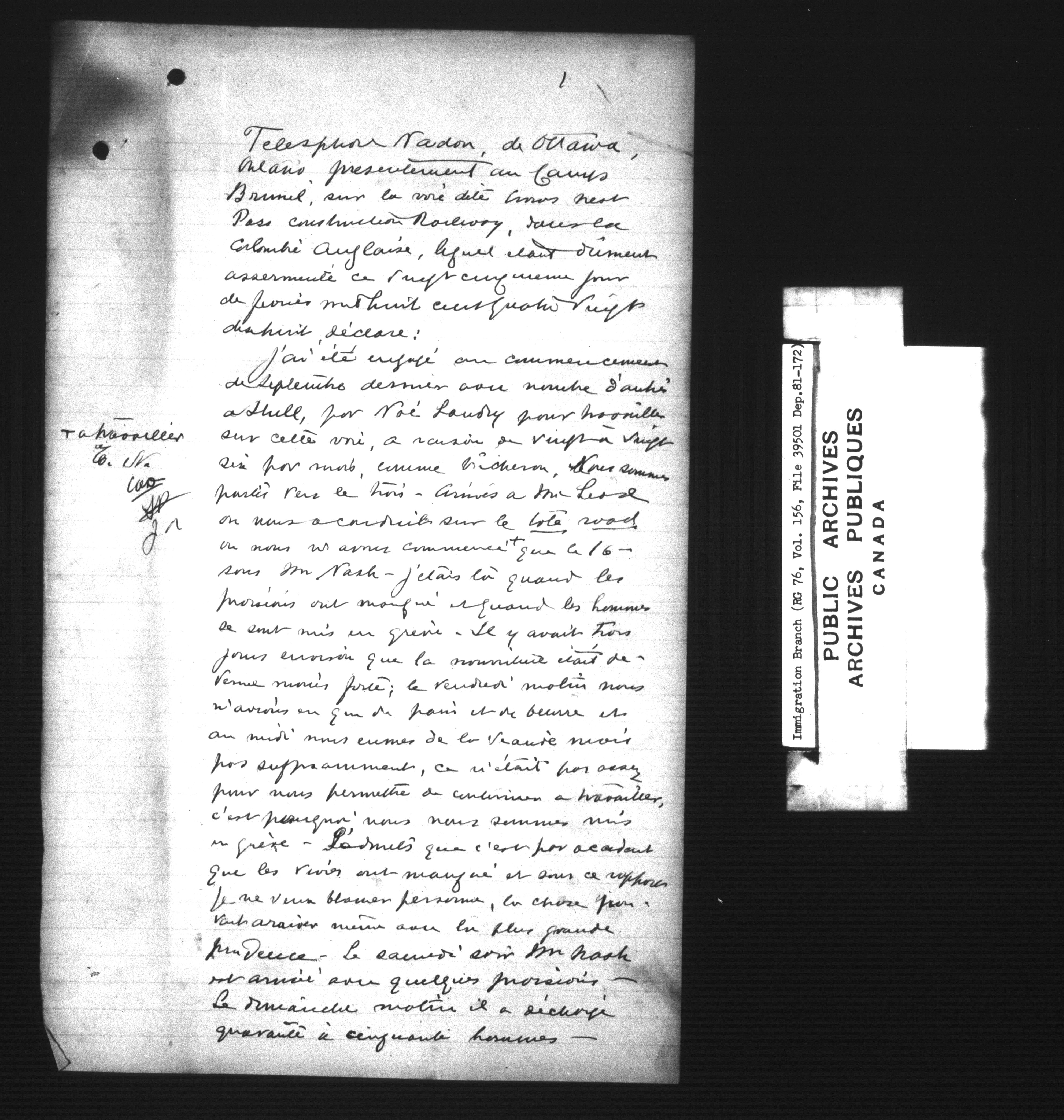Subject, policy and case files in the First Central Registry series of the Immigration Program, 1892-1950 - 7313