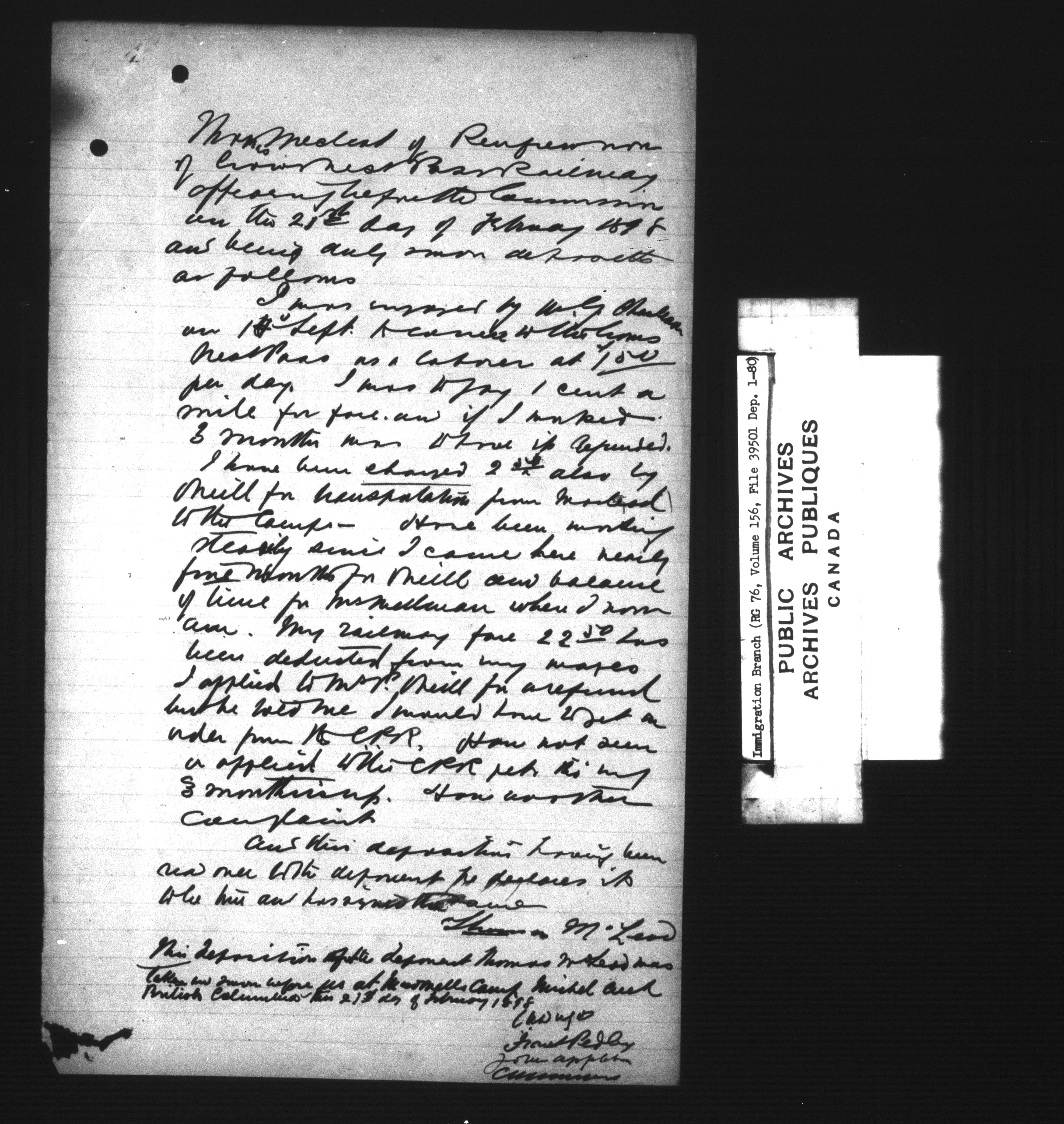 Subject, policy and case files in the First Central Registry series of the Immigration Program, 1892-1950 - 7313