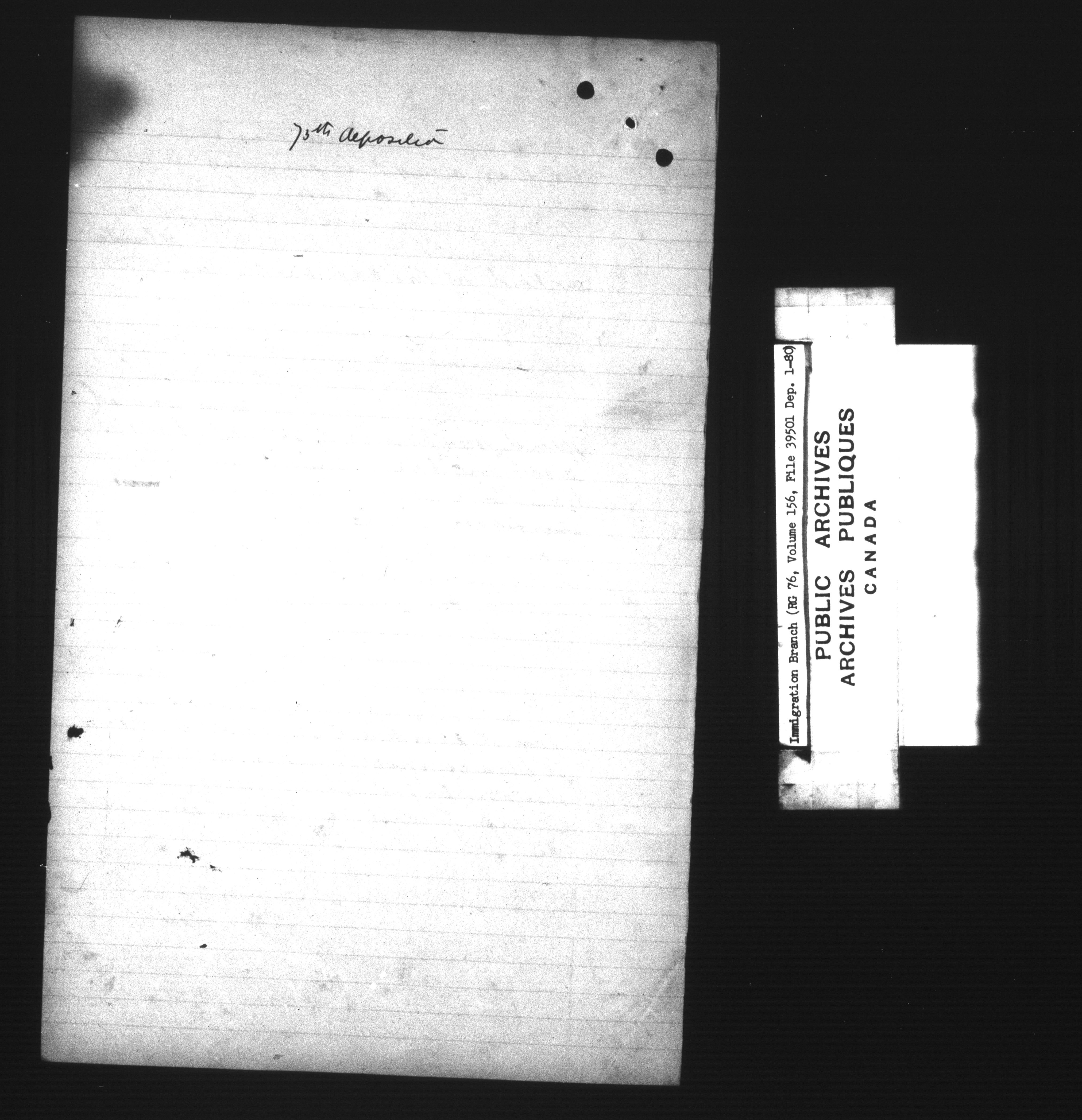 Subject, policy and case files in the First Central Registry series of the Immigration Program, 1892-1950 - 7313