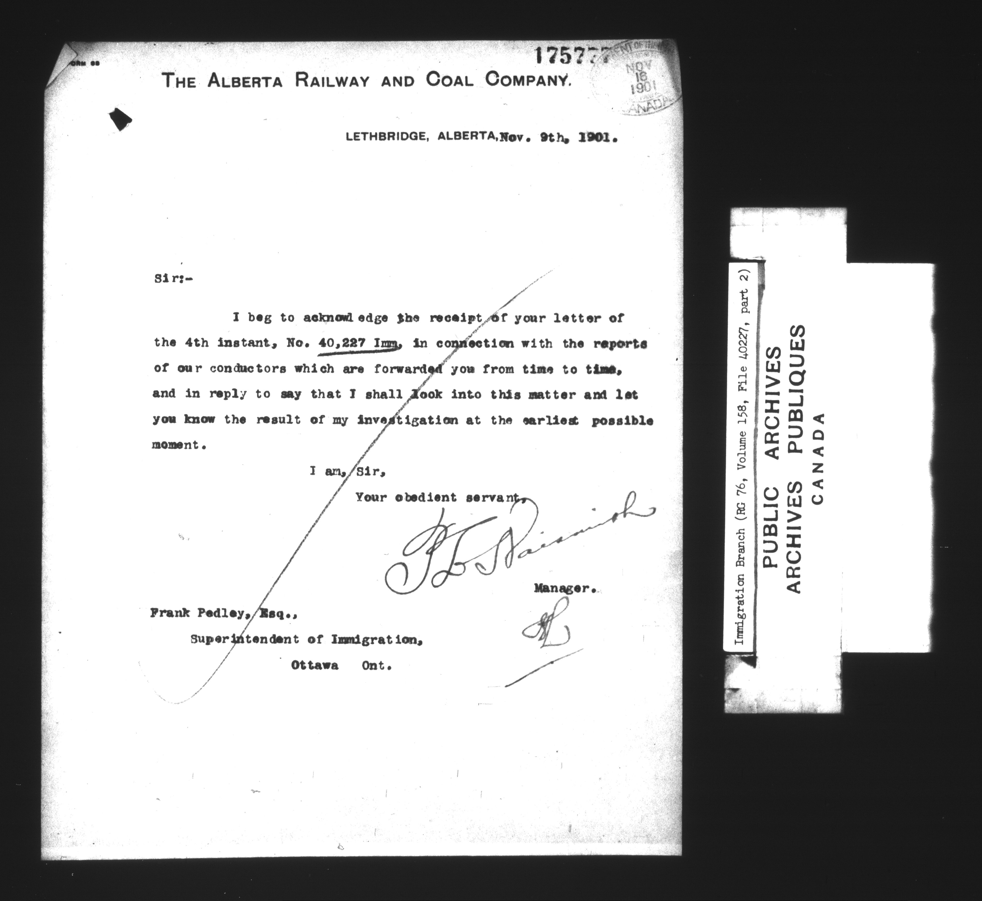 Subject, policy and case files in the First Central Registry series of the Immigration Program, 1892-1950 - 7314