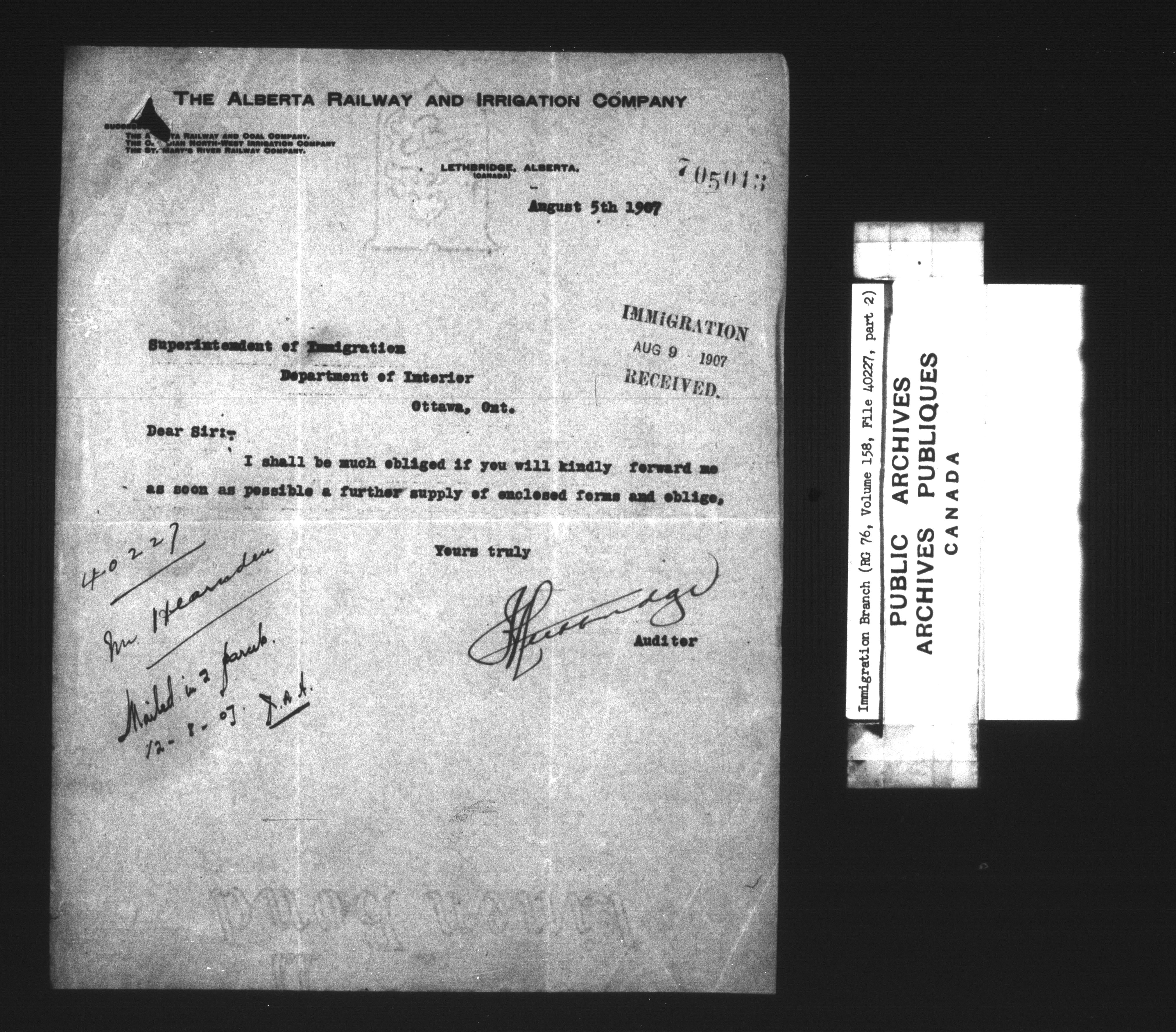 Subject, policy and case files in the First Central Registry series of the Immigration Program, 1892-1950 - 7315