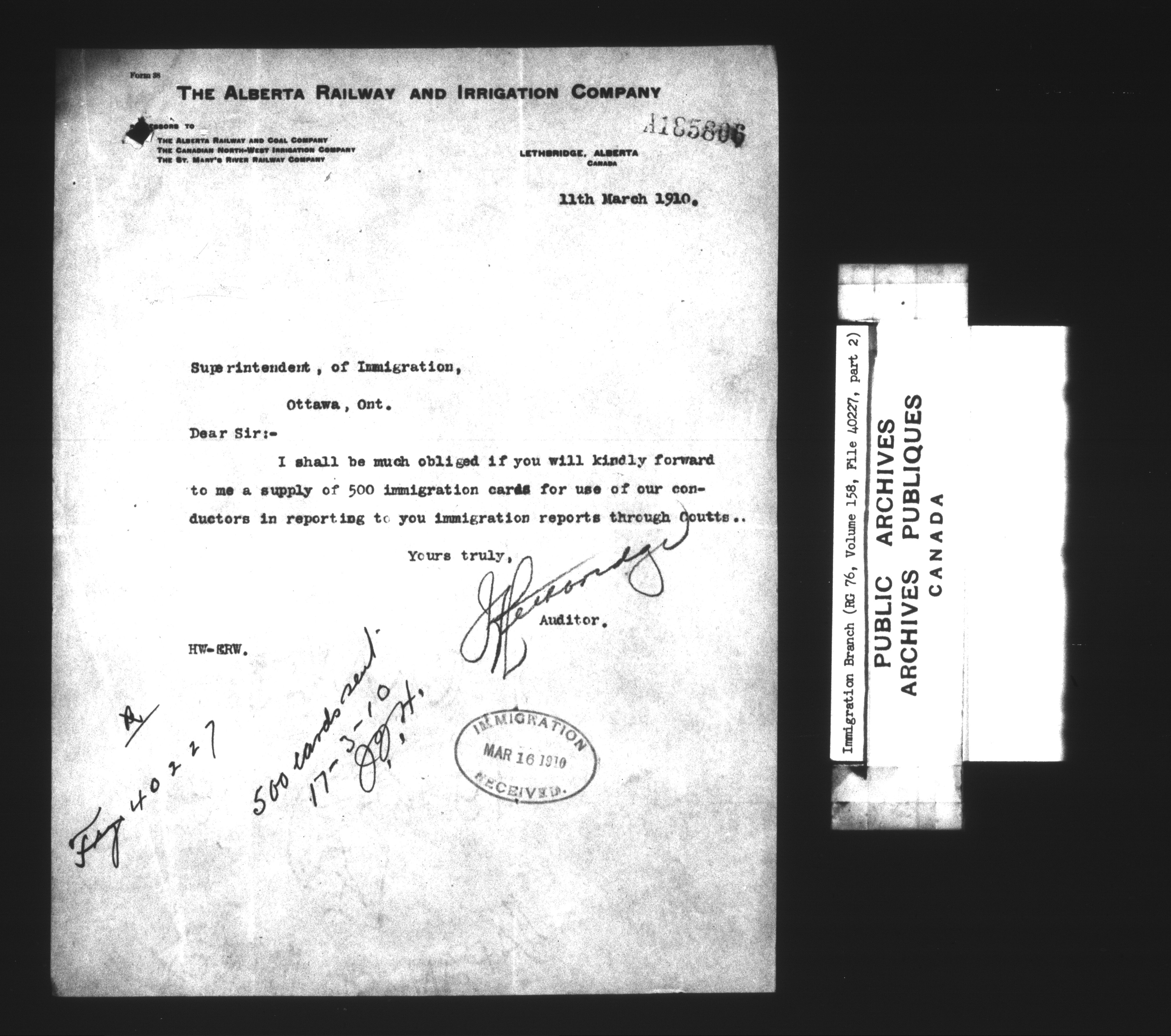 Subject, policy and case files in the First Central Registry series of the Immigration Program, 1892-1950 - 7315