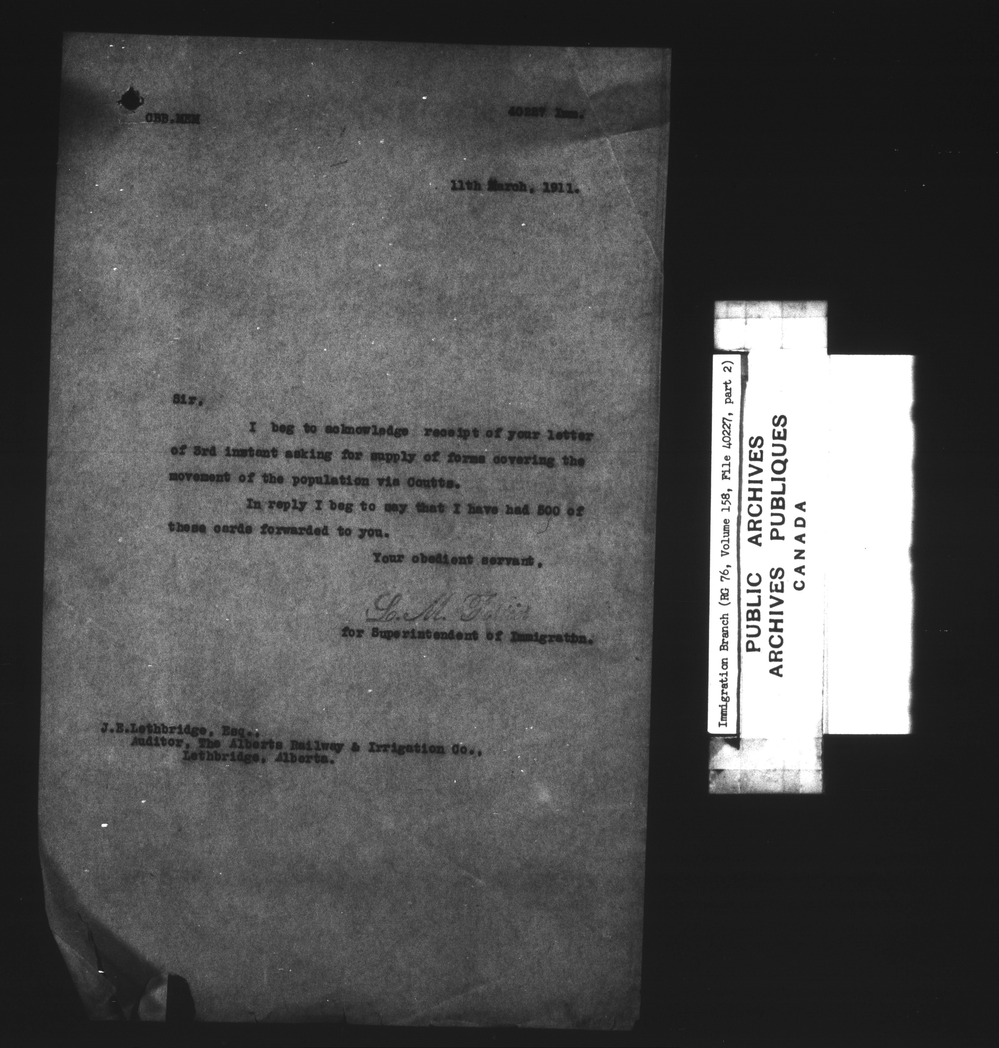 Subject, policy and case files in the First Central Registry series of the Immigration Program, 1892-1950 - 7315
