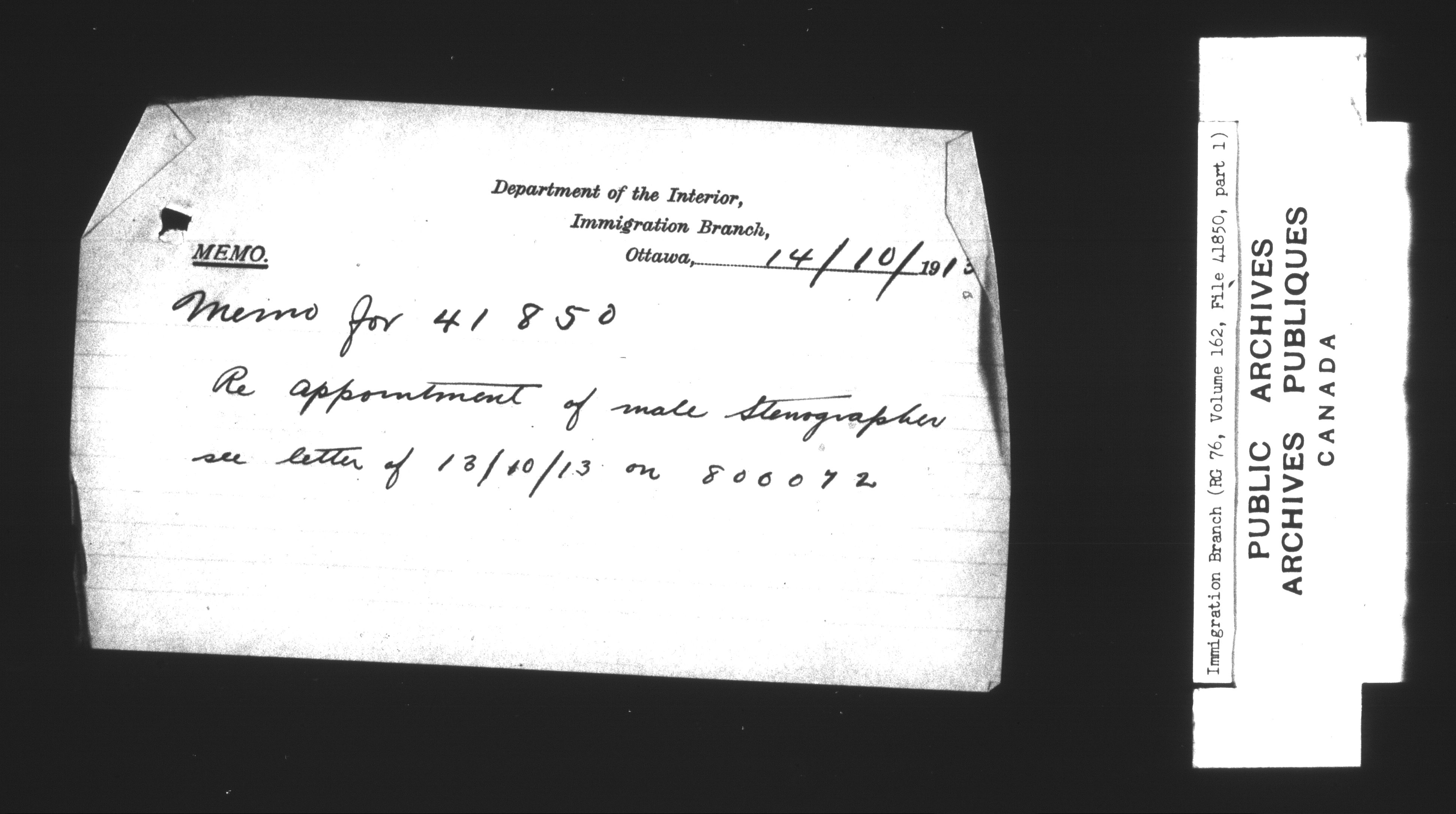 Subject, policy and case files in the First Central Registry series of the Immigration Program, 1892-1950 - 7319