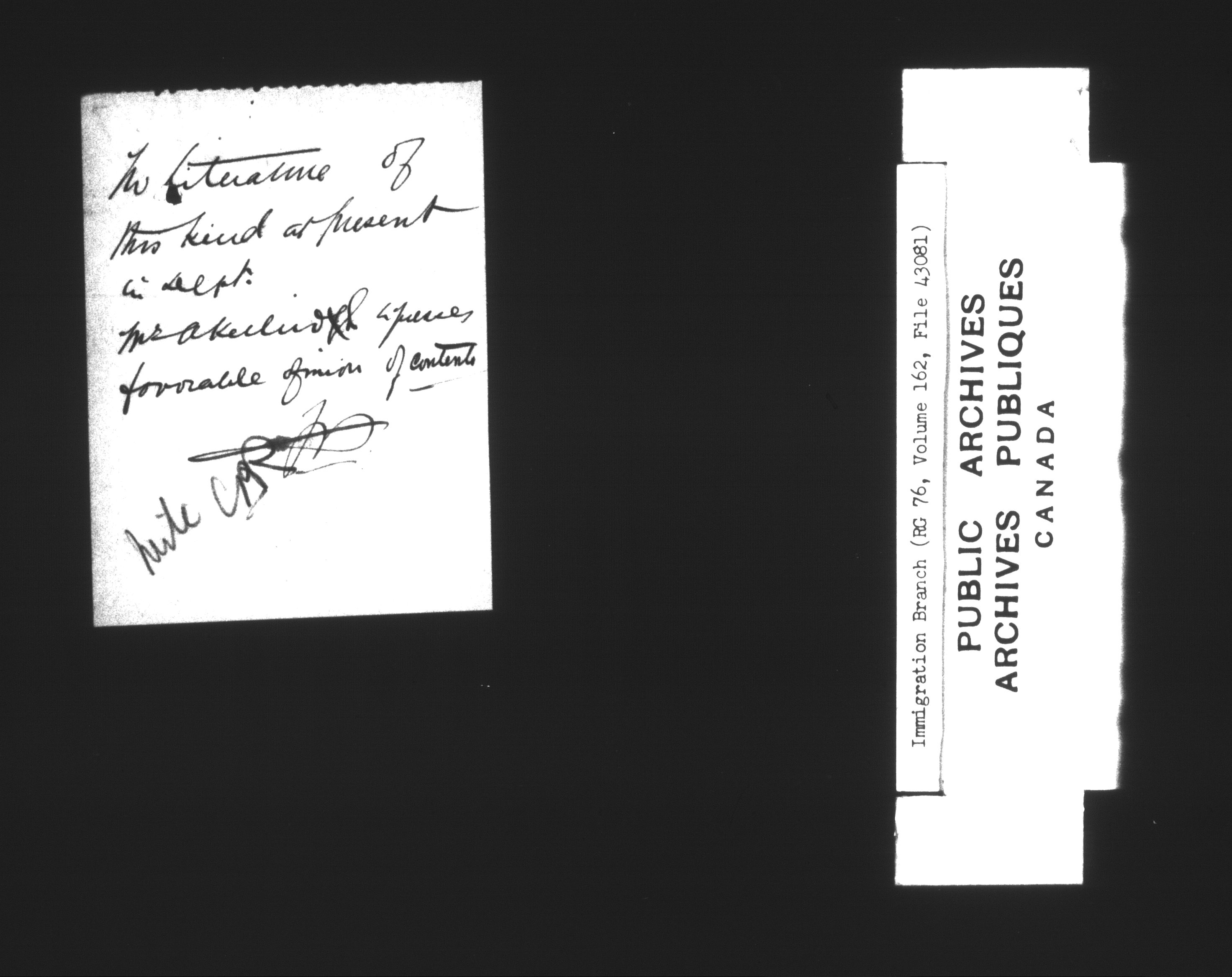Subject, policy and case files in the First Central Registry series of the Immigration Program, 1892-1950 - 7319