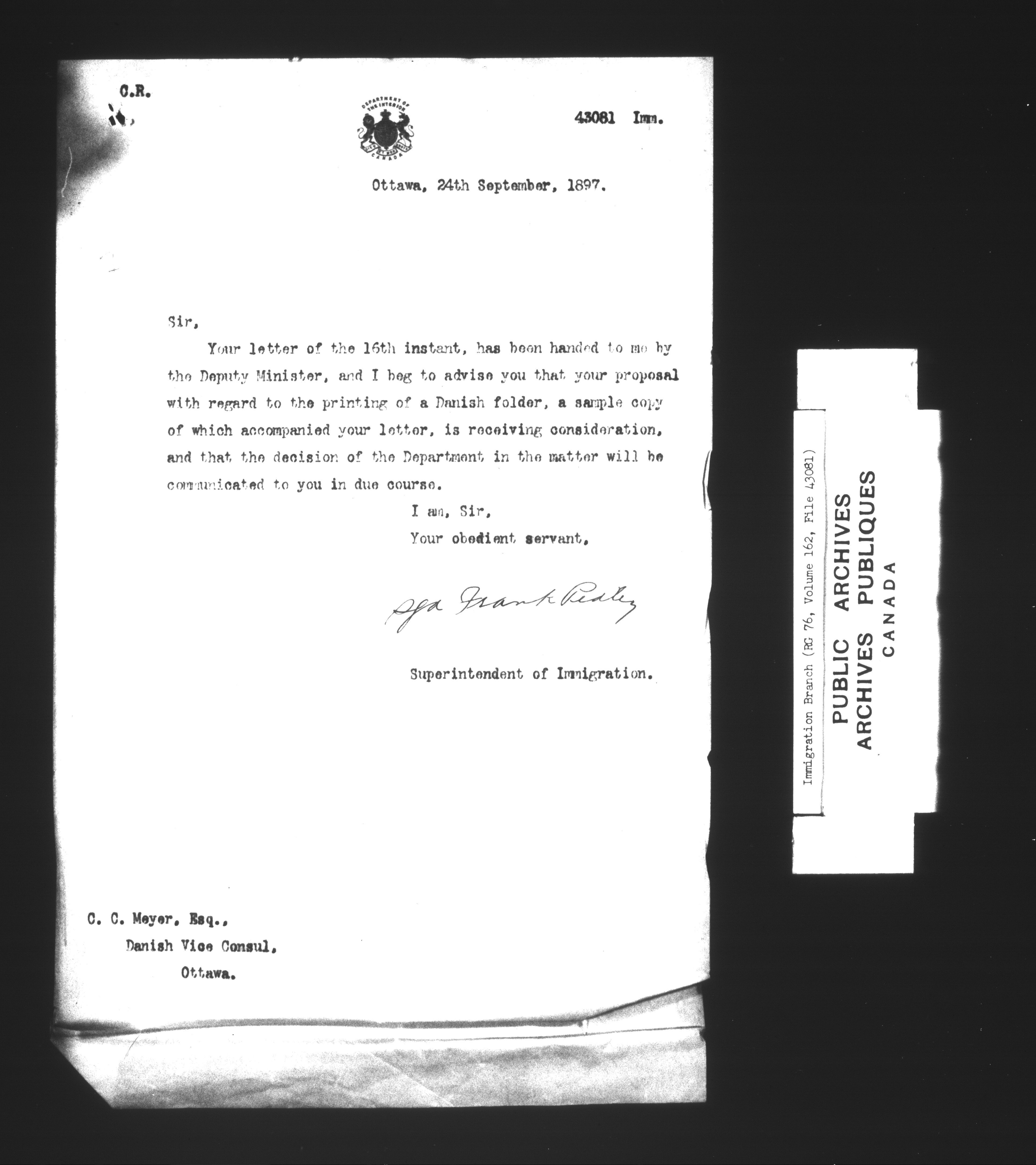 Subject, policy and case files in the First Central Registry series of the Immigration Program, 1892-1950 - 7319