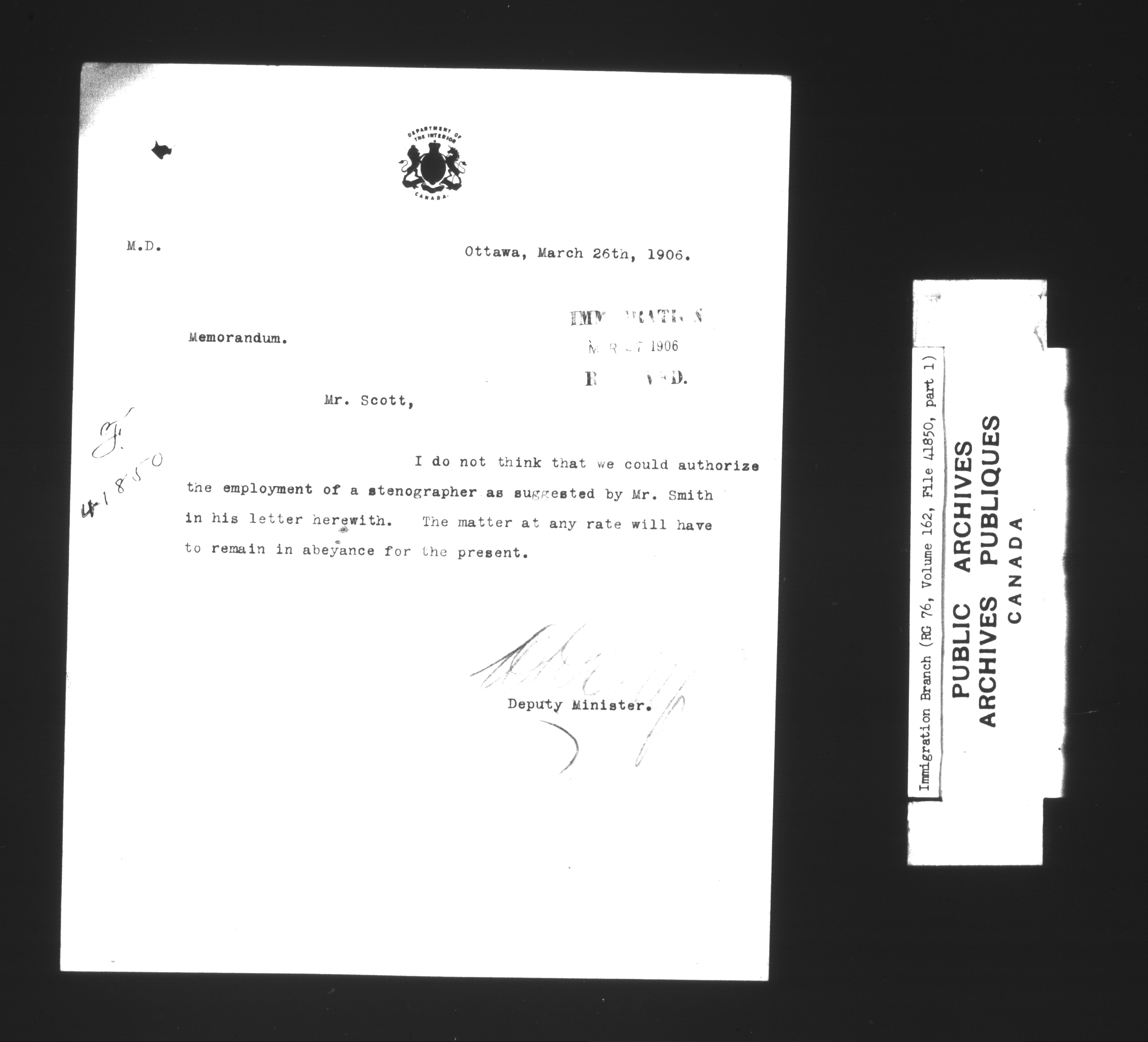 Subject, policy and case files in the First Central Registry series of the Immigration Program, 1892-1950 - 7319