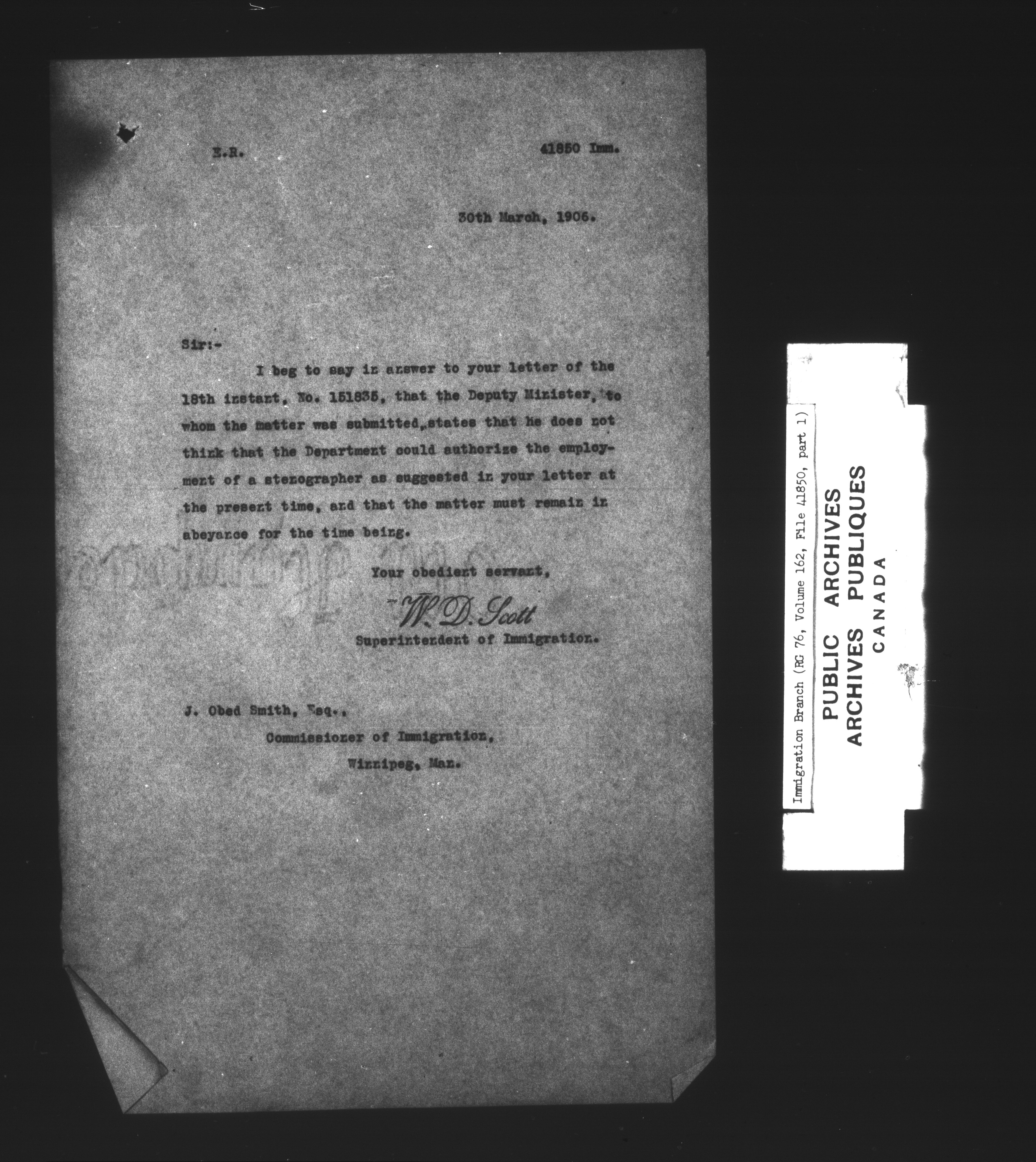 Subject, policy and case files in the First Central Registry series of the Immigration Program, 1892-1950 - 7319