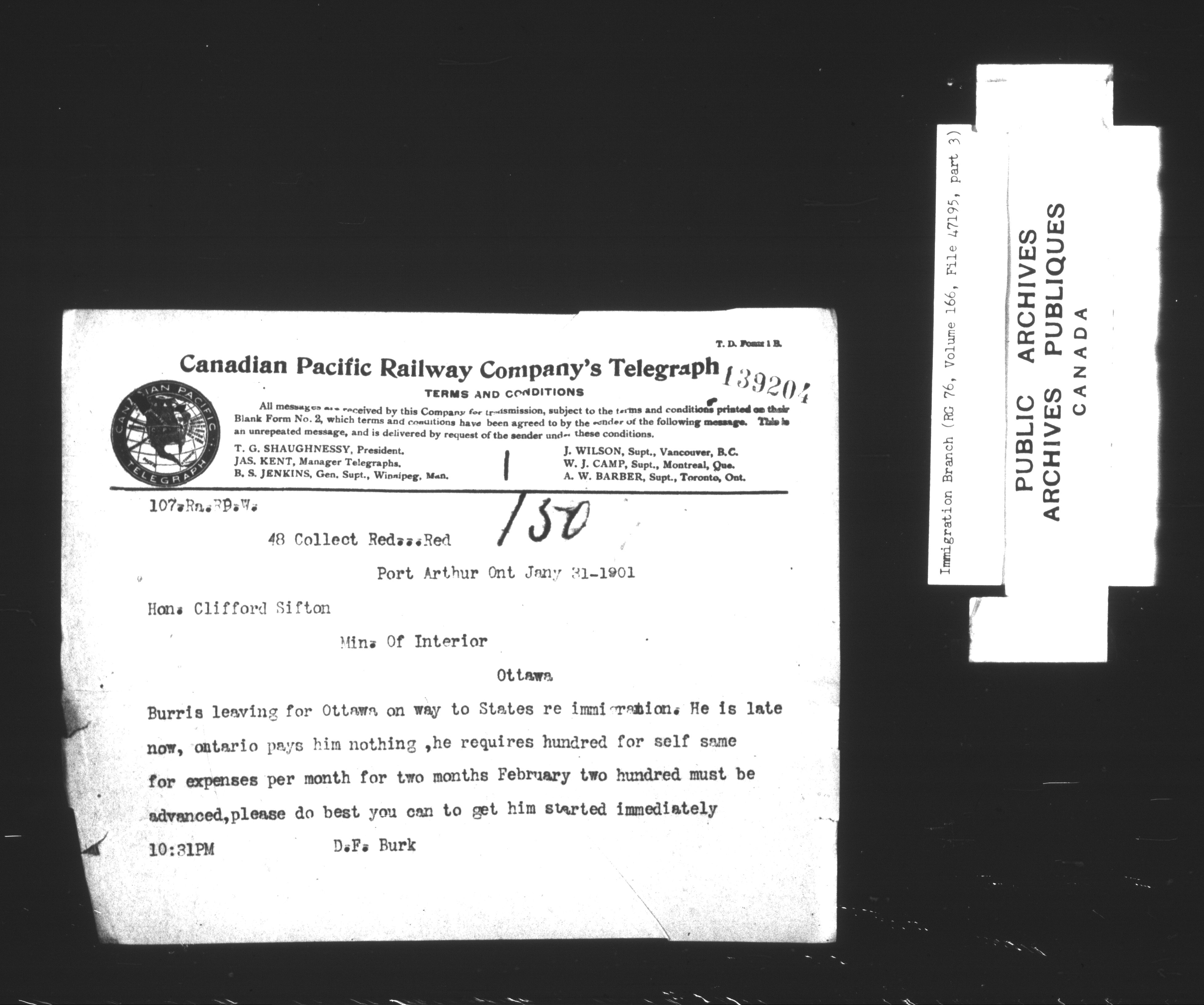 Subject, policy and case files in the First Central Registry series of the Immigration Program, 1892-1950 - 7322
