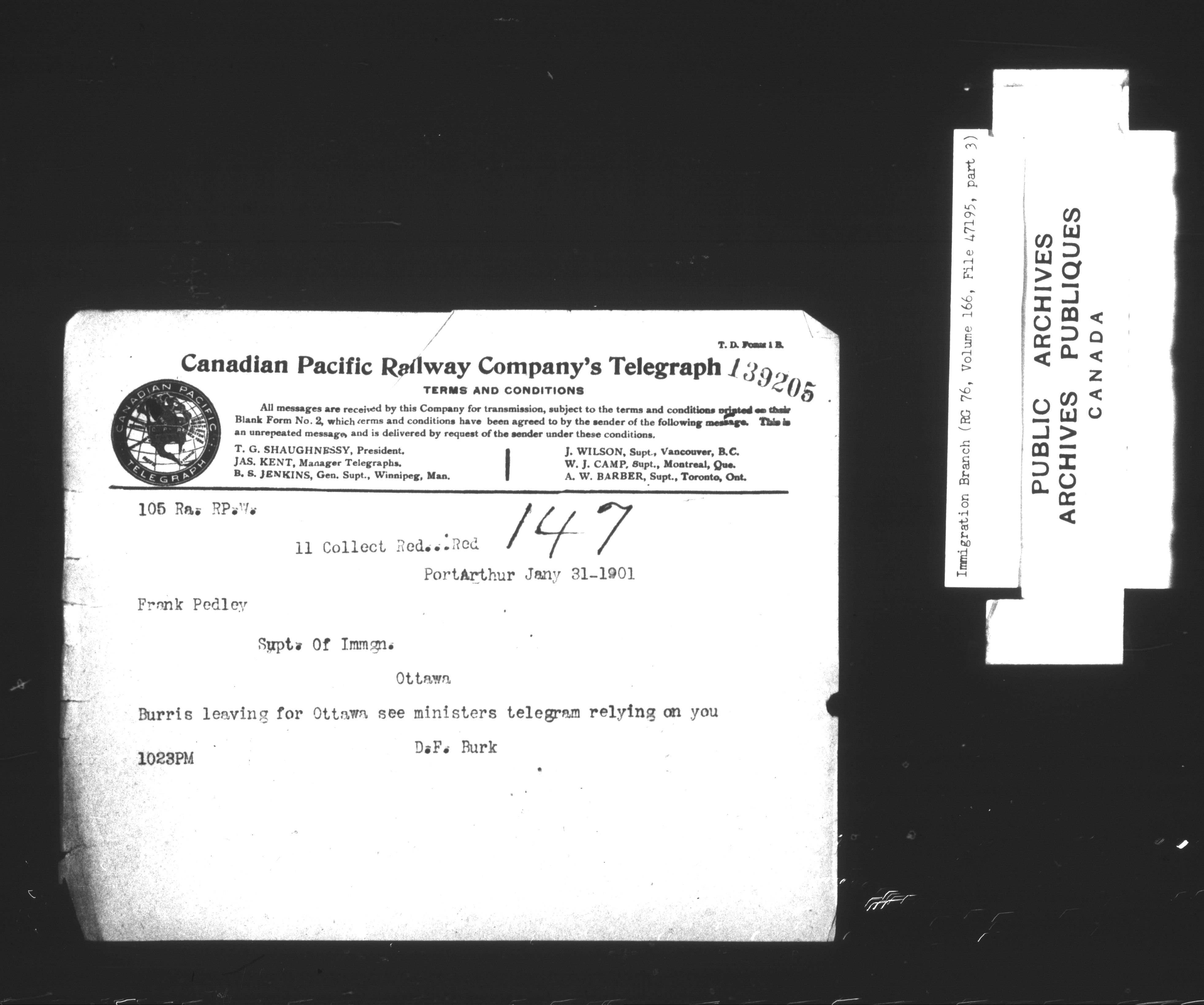 Subject, policy and case files in the First Central Registry series of the Immigration Program, 1892-1950 - 7322