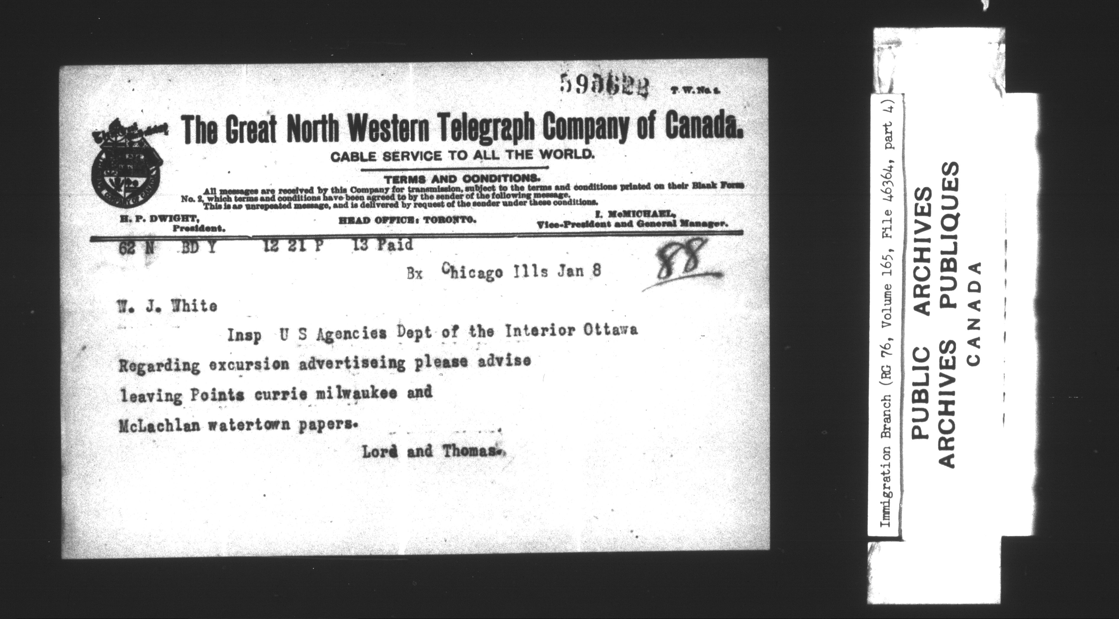Subject, policy and case files in the First Central Registry series of the Immigration Program, 1892-1950 - 7322