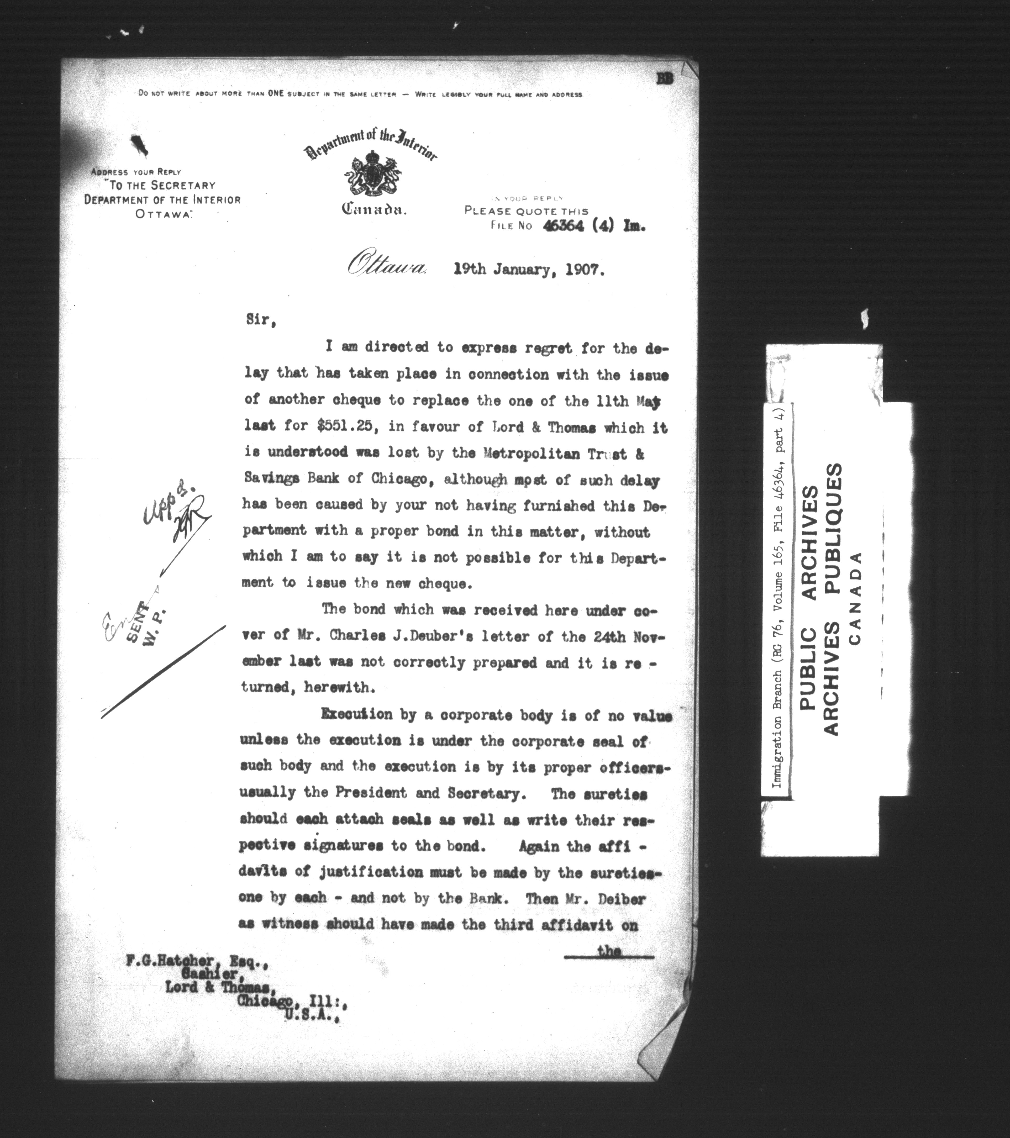 Subject, policy and case files in the First Central Registry series of the Immigration Program, 1892-1950 - 7322
