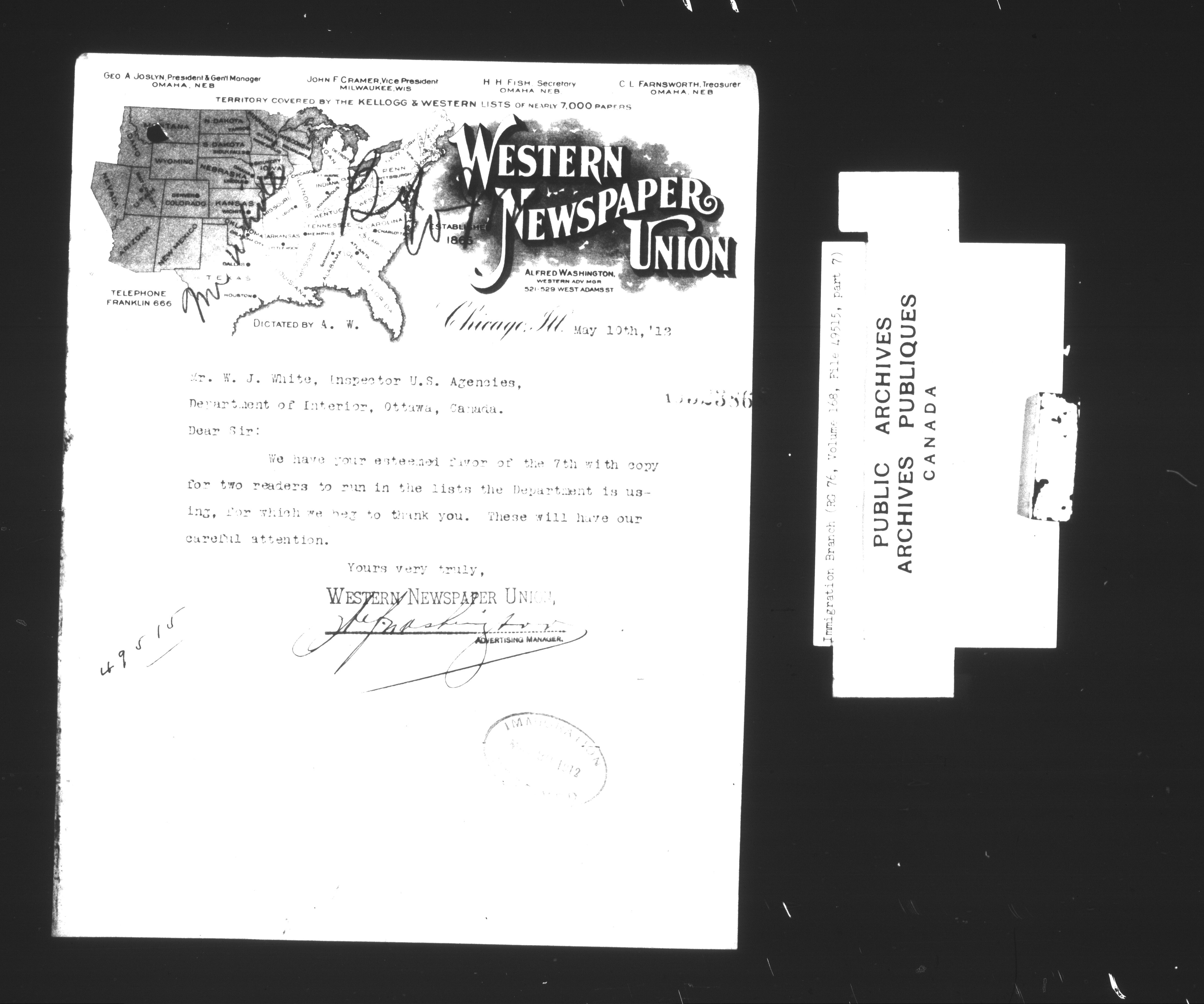 Subject, policy and case files in the First Central Registry series of the Immigration Program, 1892-1950 - 7324